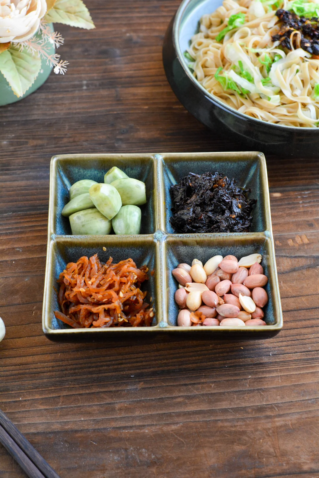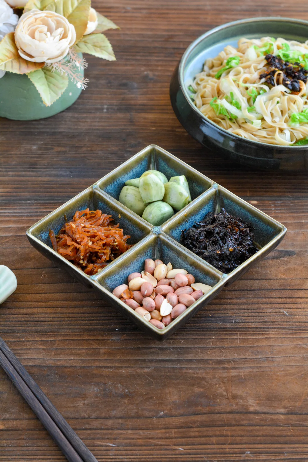 新入手的四宫格碟,容量不小,今后吃面喝粥火锅的小菜蘸料就用它了,干净利索还省地儿。