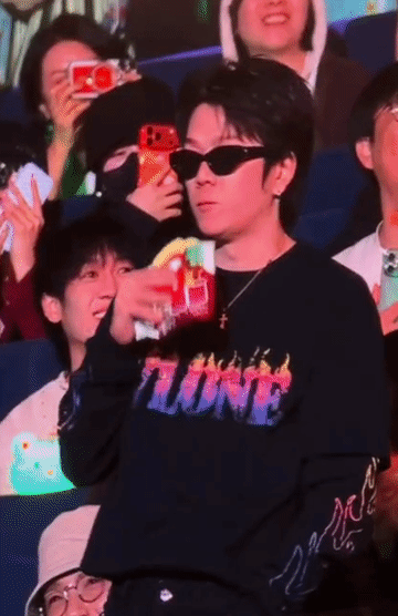 再就业兄弟们观看陆虎北京演唱会,齐刷刷一排,真是不放过任何一次秀恩爱的机会啊[捂