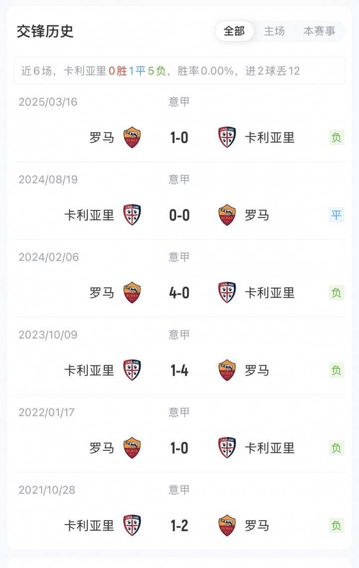 本场赛前,罗马9胜0平4负积27分,排名第4,卡利亚里2胜5平6负积11分,排名第15。双方近6次意甲交锋,罗马保持不败。