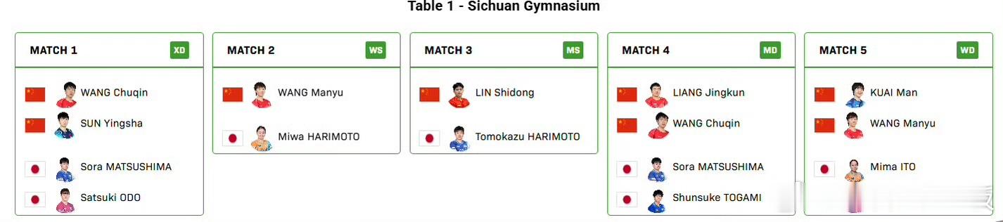 国乒vs日本2025成都混团世界杯决赛,国乒vs日本对阵公布,如下图决赛每一盘都是硬仗,国乒的字典里从无退缩,每一次挥拍都是热血与荣耀的较量,这就是刻在骨子里的国乒精神!为这群敢拼敢打的少年们呐喊,期待他们横扫赛场、卫冕荣光,国乒冲鸭!