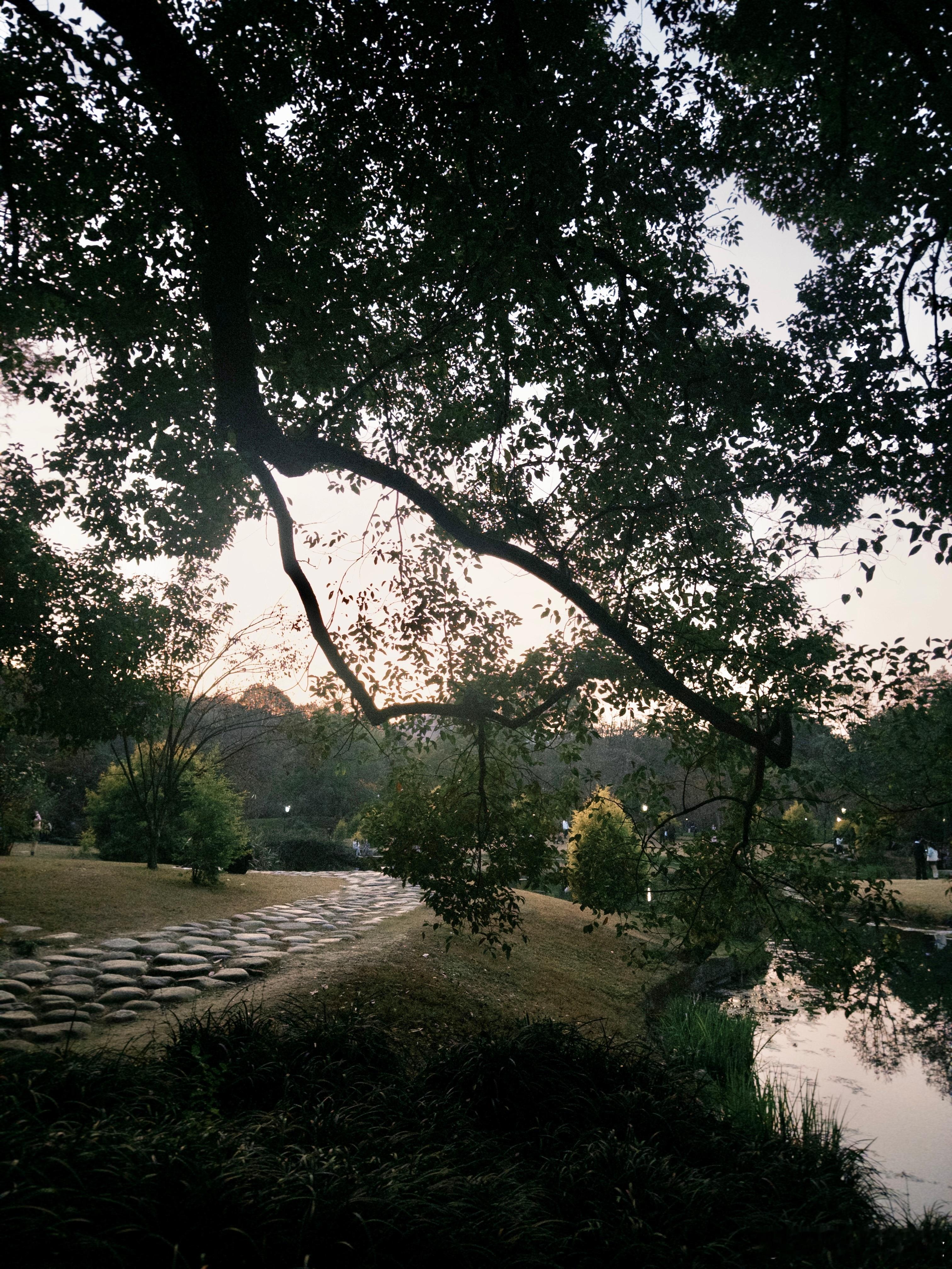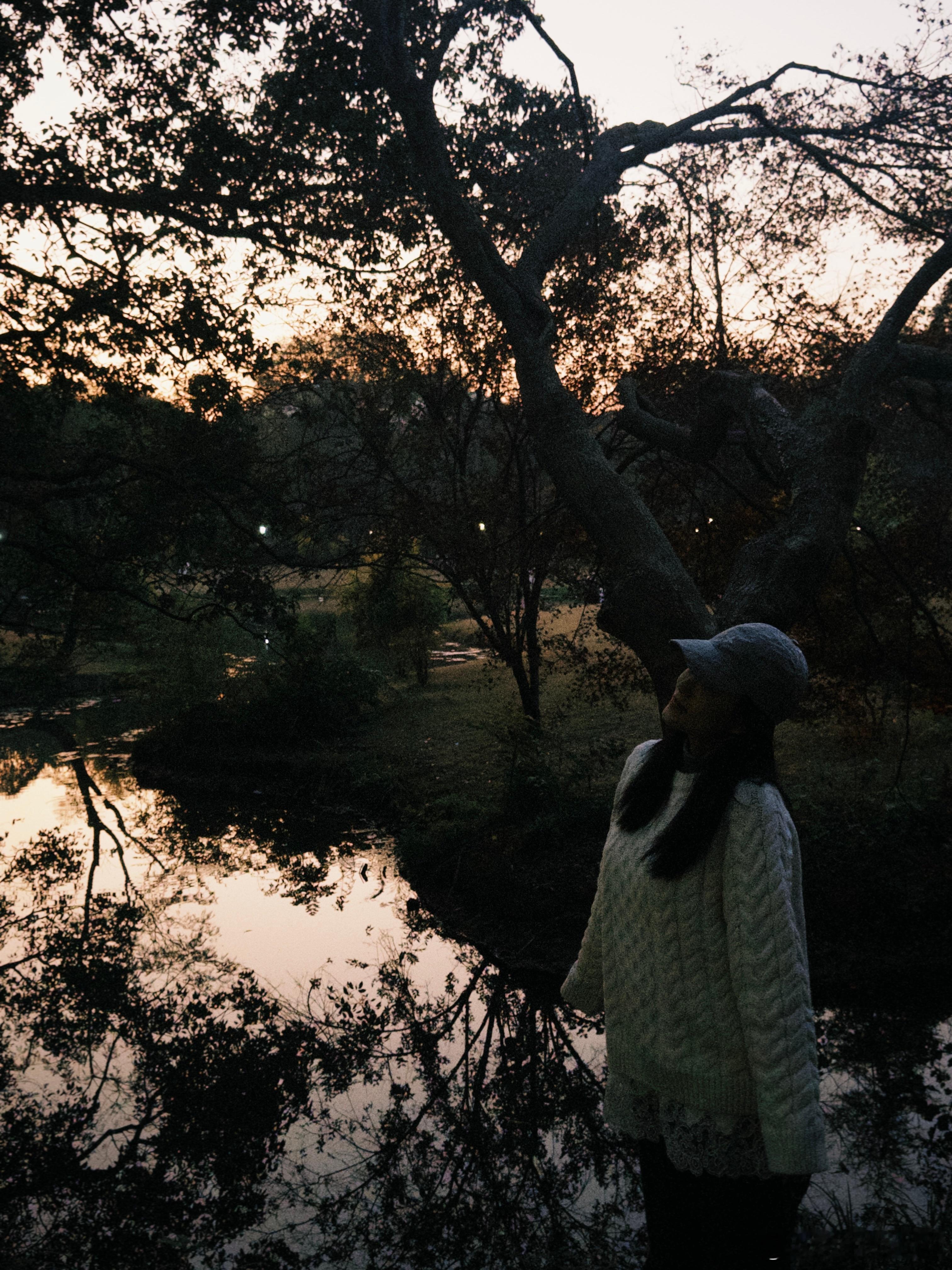 诺大的世界 一个特别充实的周末,甚至周日都在值班。但是心里总觉得空落落的。恰巧uu和我分享虎跑一路的美景,我骑着小电驴就赴约了。原来今天的节气是大雪,落日的时间已然适应冬天的节奏。边骑车边欣赏暖色调的树景,余晖的颜色染满天空,西湖的水还是那样油润,四个轮子跑的都堵在我身边,我却畅行无阻。心情不自觉地轻快了。我们一起逛公园,两个人都没打扮,我穿一个怎么拍怎么过曝的白毛衣,她穿了和树叶融为一体的红外套,却格外惬意。骑车回程的时候竟然在隧道里堵车了。很长很长的隧道,狭窄的非机动车道,电瓶车一辆接着一辆,无法前进,也无法后退,四个轮子的耀武扬威地滑过。uu感叹此情此景仿佛进入了无限流、有着强烈的不真实感。出口在何处、前路有多长?站起身也瞧不见。向后望,只有一顶顶头盔下焦躁的面庞。前路漫漫亦灿灿。出隧道后,豁然开朗,真实的只有我尾椎骨传来的麻木。人生或许只是虚空。神明如果还不帮助你,那说明她相信你。 杭州·太子湾公园
