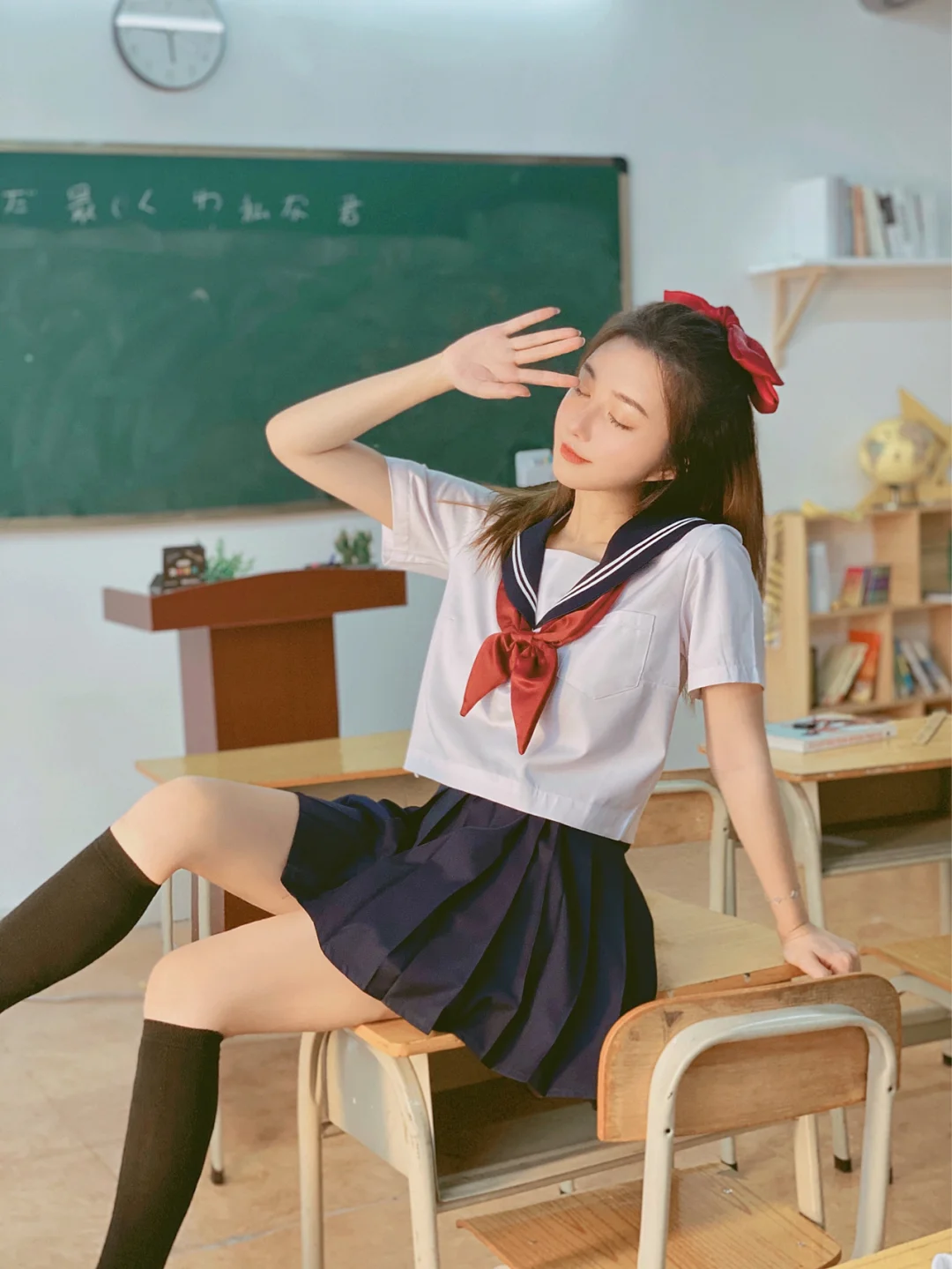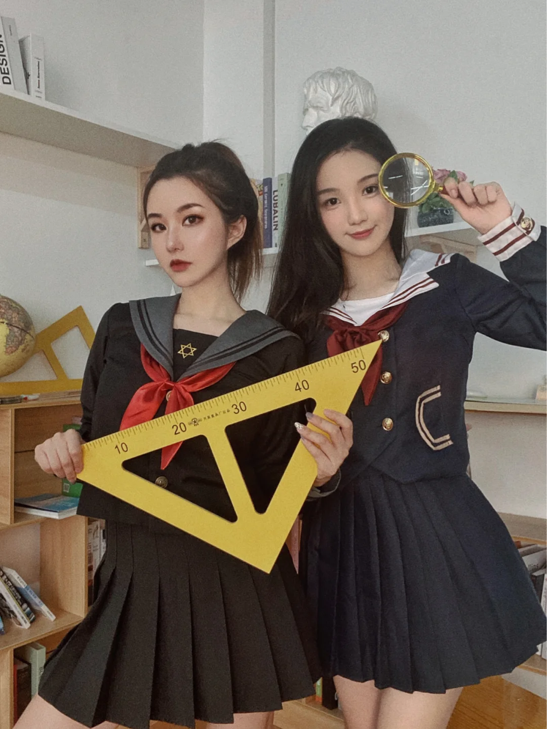每个场景都有配套的服装可以随便换,从头到脚一套都有哦,场景内还有打光灯和手机支架~