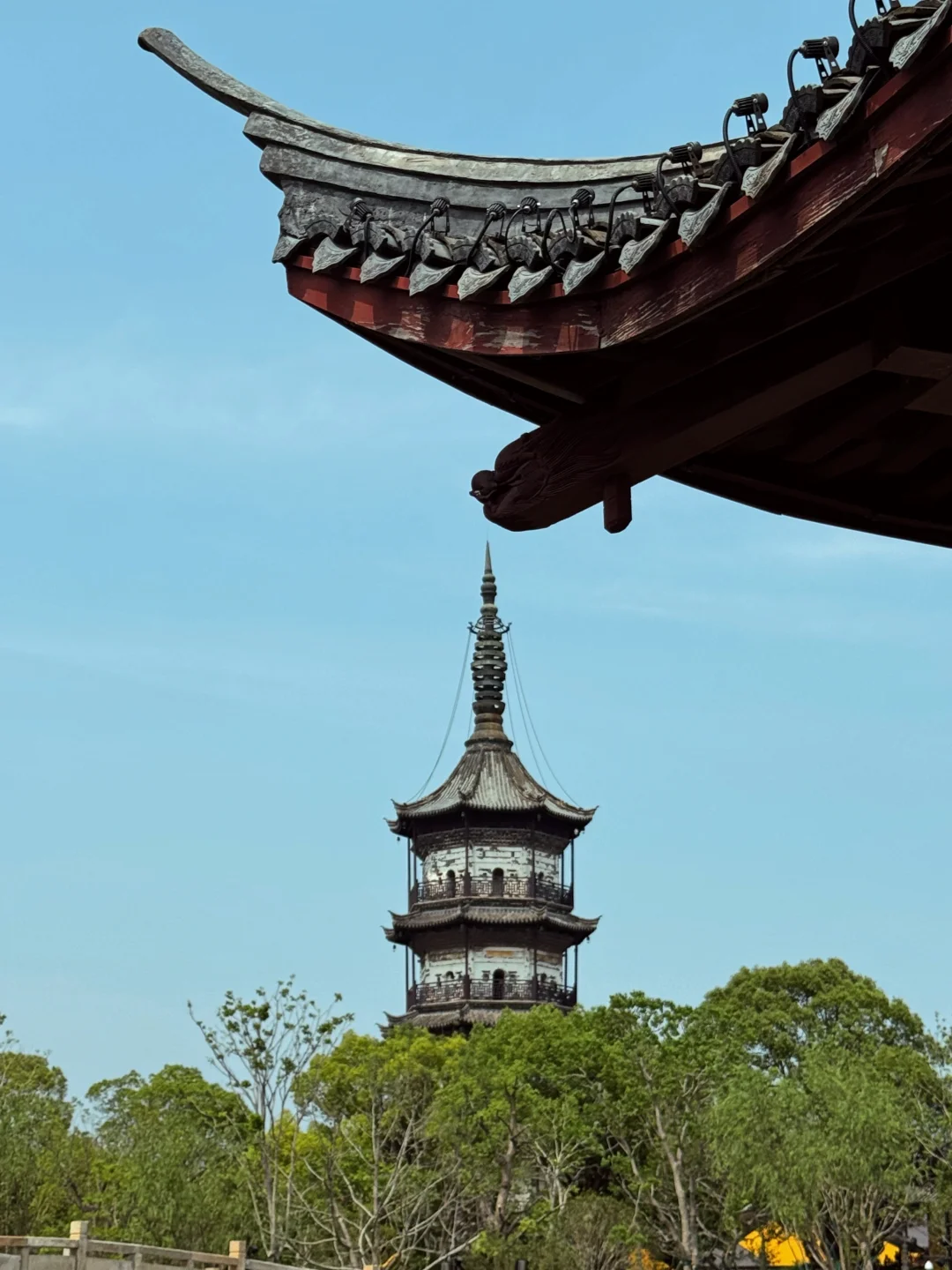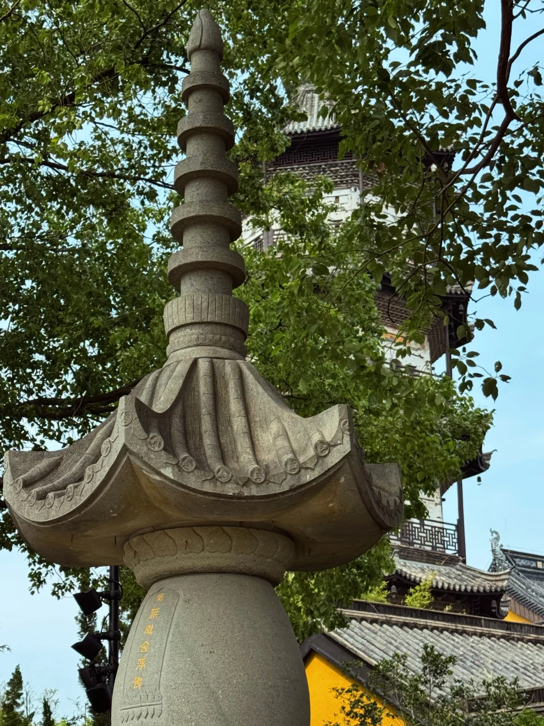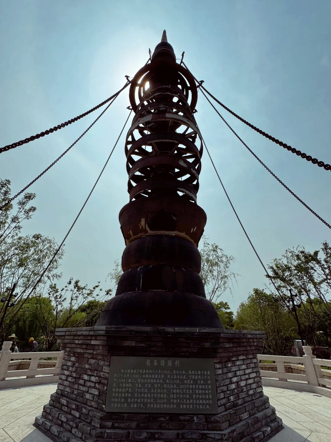 [拍立得R]现有报本塔为康熙五十四年(1715年)修筑,塔高五层49.14米,底层直径8.8米,四周华檐绕之,上下角皆悬铜铃。报本塔对面台基上有一巨大的塔刹,为报本塔修缮时候取下的旧塔刹,如今旧塔刹和古塔相互对立,中间有景观水池欣赏宝塔倒影。