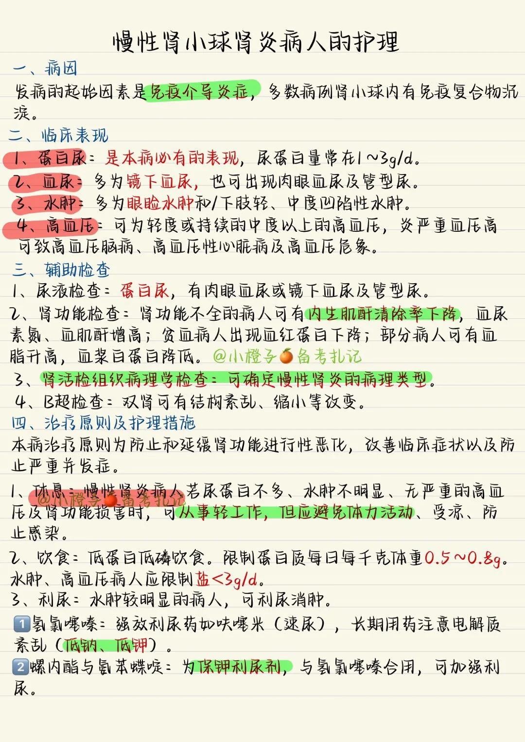 🌟今日笔记分享慢性肾小球肾炎病人的护理🙋