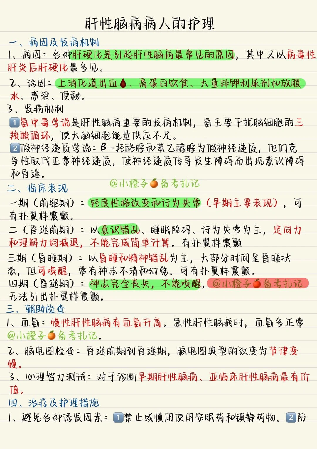 🌟今日笔记分享肝性脑病病人的护理🙋