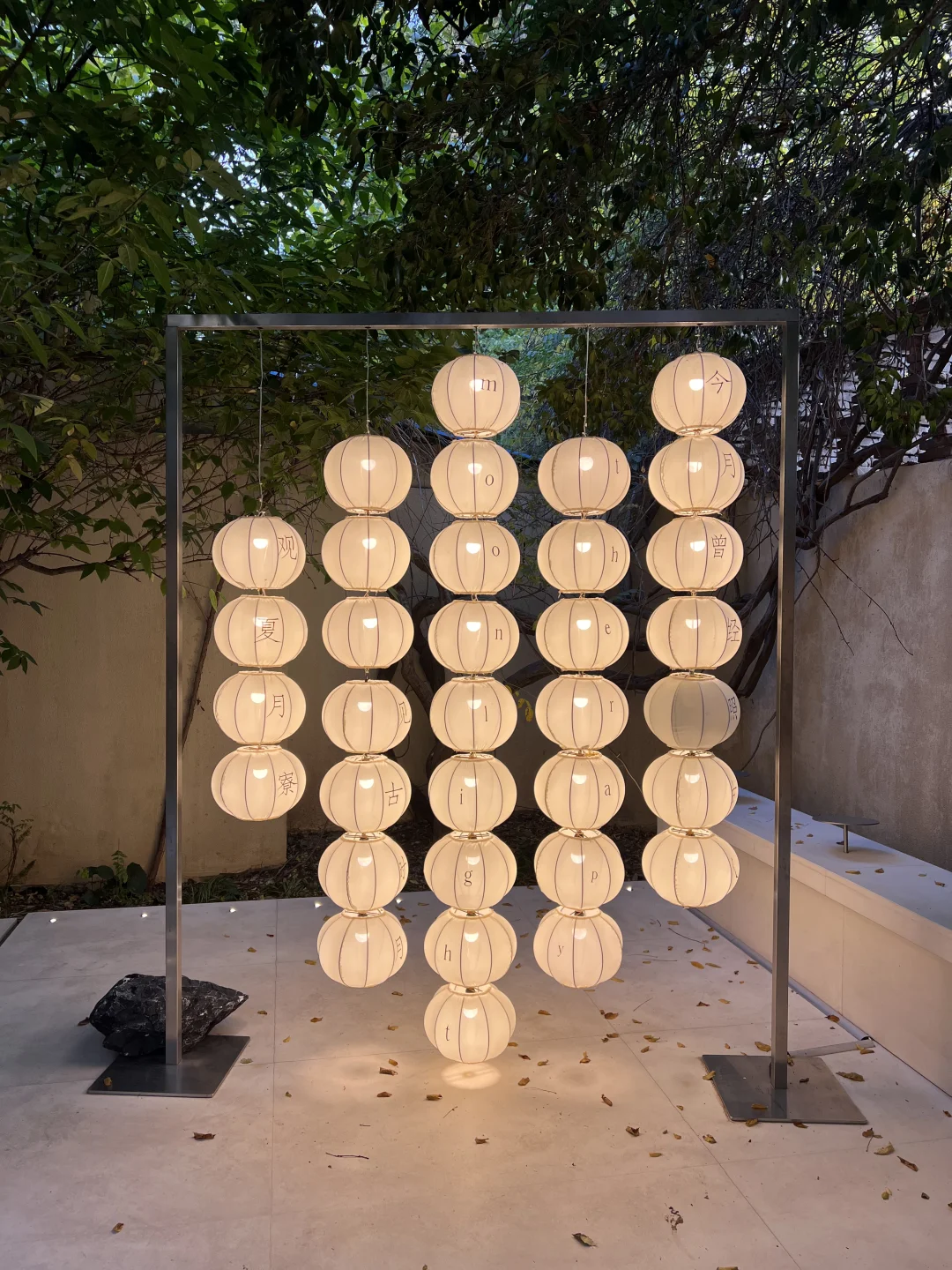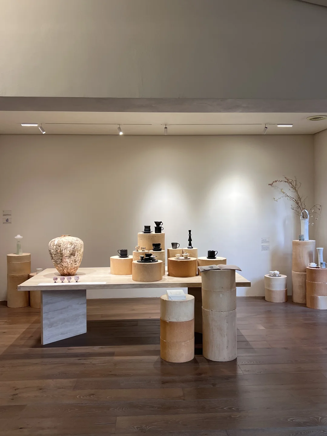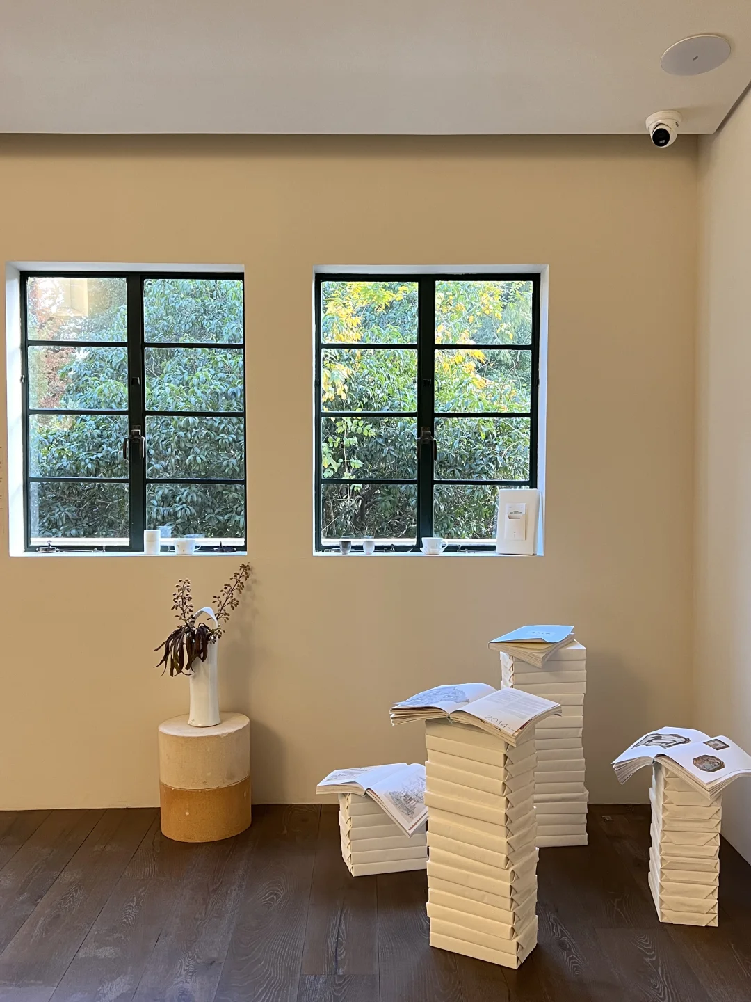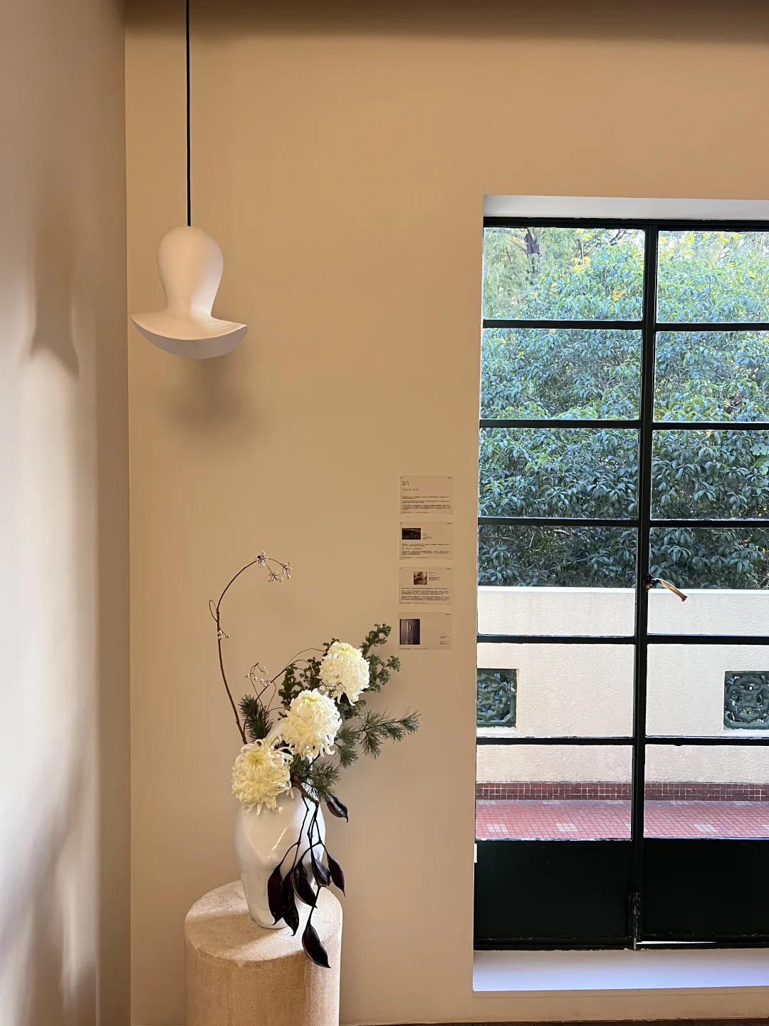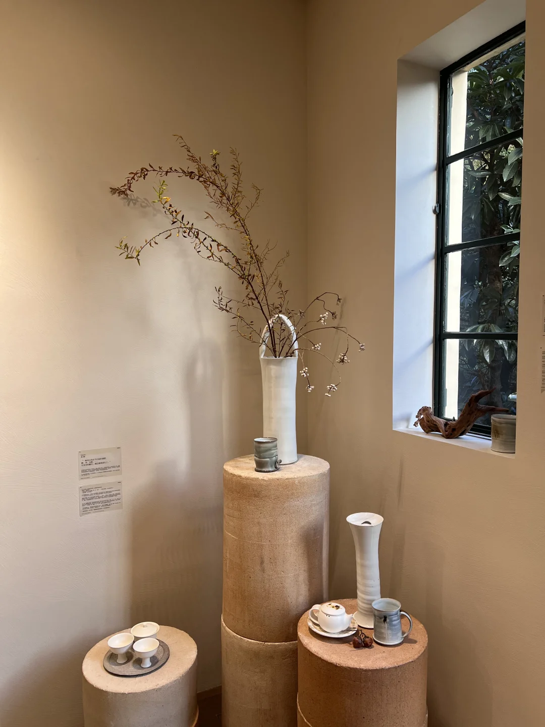 二楼的展览依旧很美,陶瓷瓶中的插画很有中式风的意境。推窗出去看能看到院子里的艺术装置「为你 存一晚月光」和惬意慵懒的小猫🐈