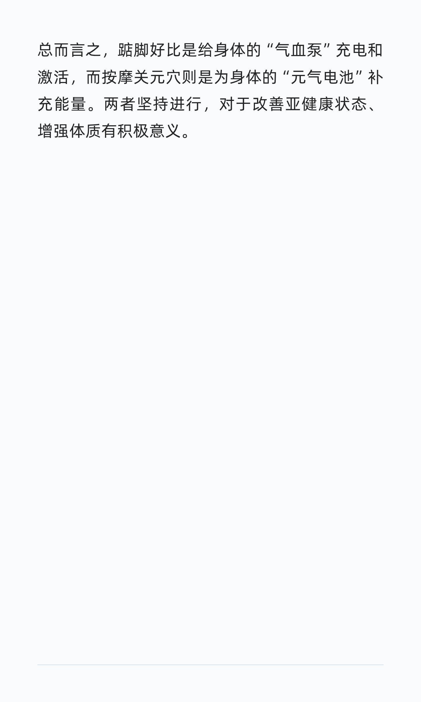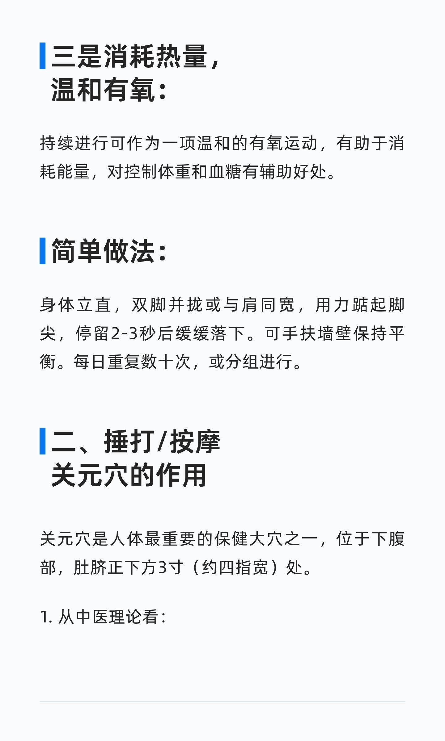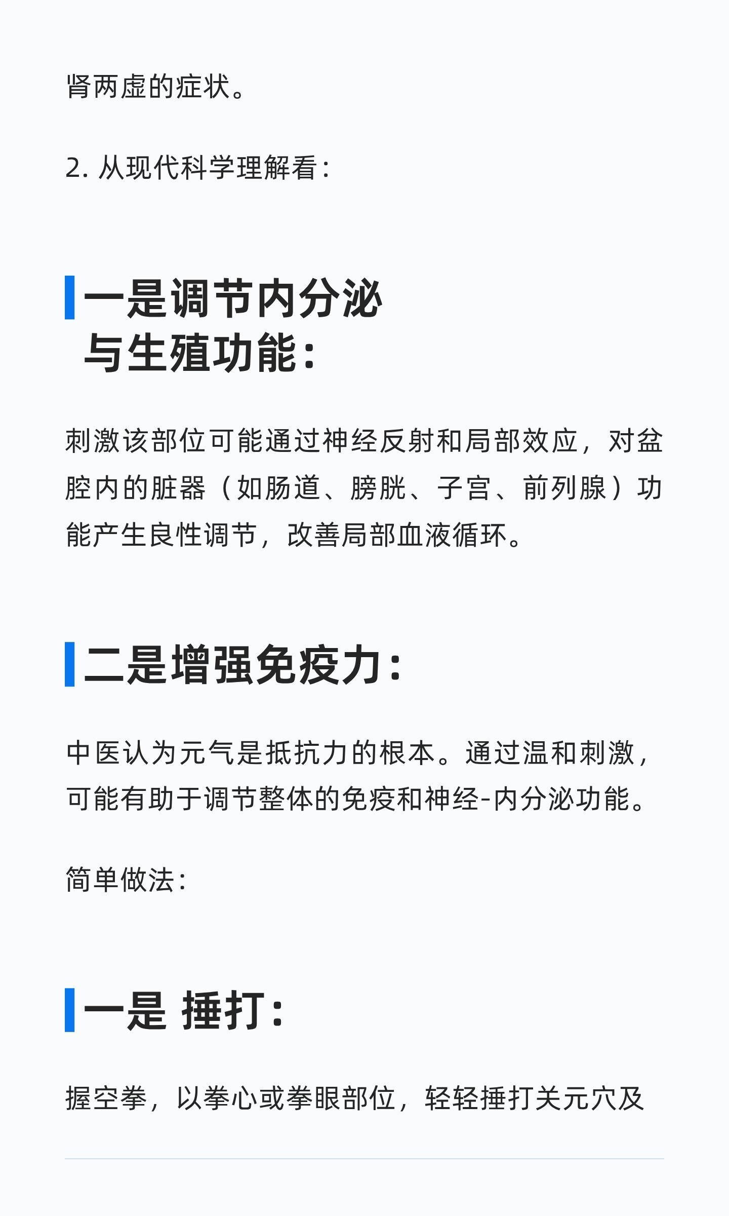一个非常好的中医养生保健方法。踮脚能激发经络、运行气血、强化肌肉,预防损伤;捶打关元穴能培补元气、调理生殖系统,改善消化功能。两者结合,能有效提升体质,预防亚健康。养生就是养命治未病才是养生的终极追求健康养生
