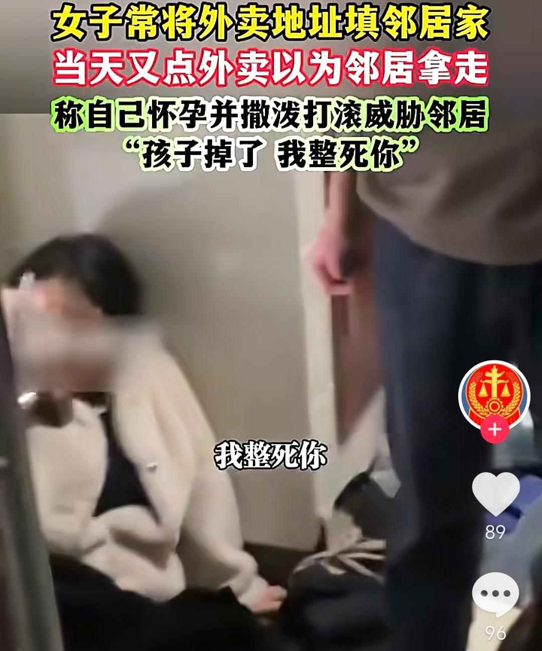 孩子掉了,我整si你!这是一个怀孕女子对邻居说的话,原因很奇葩,女子把外卖地址填写的是邻居家地址,女子怀疑自己的外卖被邻居拿走了,带着老公气势汹汹敲开邻居家的门说“你们家的美团外卖是我们家的,还我们。”邻居说没拿什么外卖,女子不相信邻居家的话,在门口又哭又耍赖,还说自己怀孕了,肚子疼,是被邻居气的,要是孩子掉了就找邻居麻烦。网友:孩子,你快跑吧,这男女的不配当你父母。