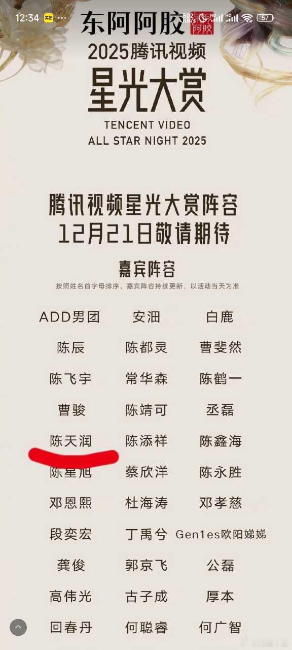 腾讯视频星光大赏 陈天润他不配去这么大的活动。。。平台现在请人的要求这么低吗36