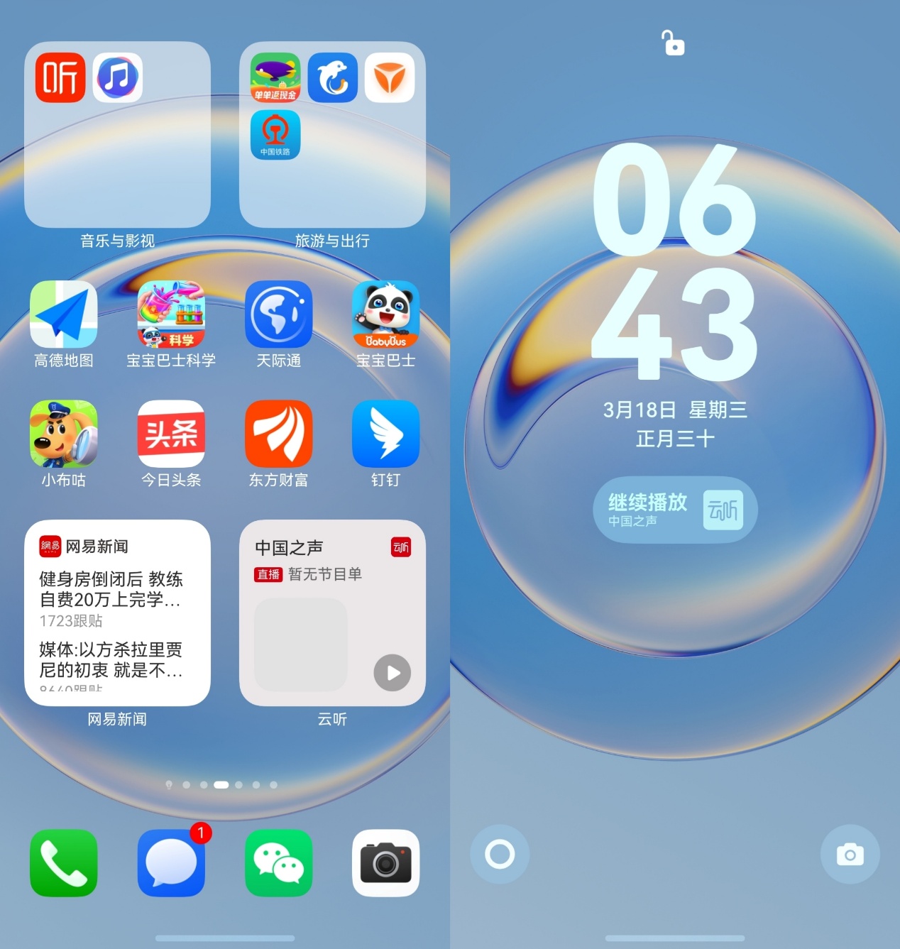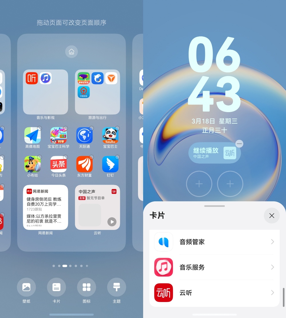早高峰通勤我总习惯把当天的热点浏览一遍,以前各种点App特别繁琐。用上鸿蒙6设备后,我在桌面放了鸿蒙版网易新闻的“热点资讯”服务卡片,不用打开App,热搜要闻在桌面一眼看完,想了解详情,点击卡片就能直达App对应页面。有时候地铁太挤,不想刷手机,我会听听播客。我在锁屏界面添加了鸿蒙版云听的“最近收听”卡片,点一下就能接着听,配合桌面的“播放控制”卡片,频道轻松切换。