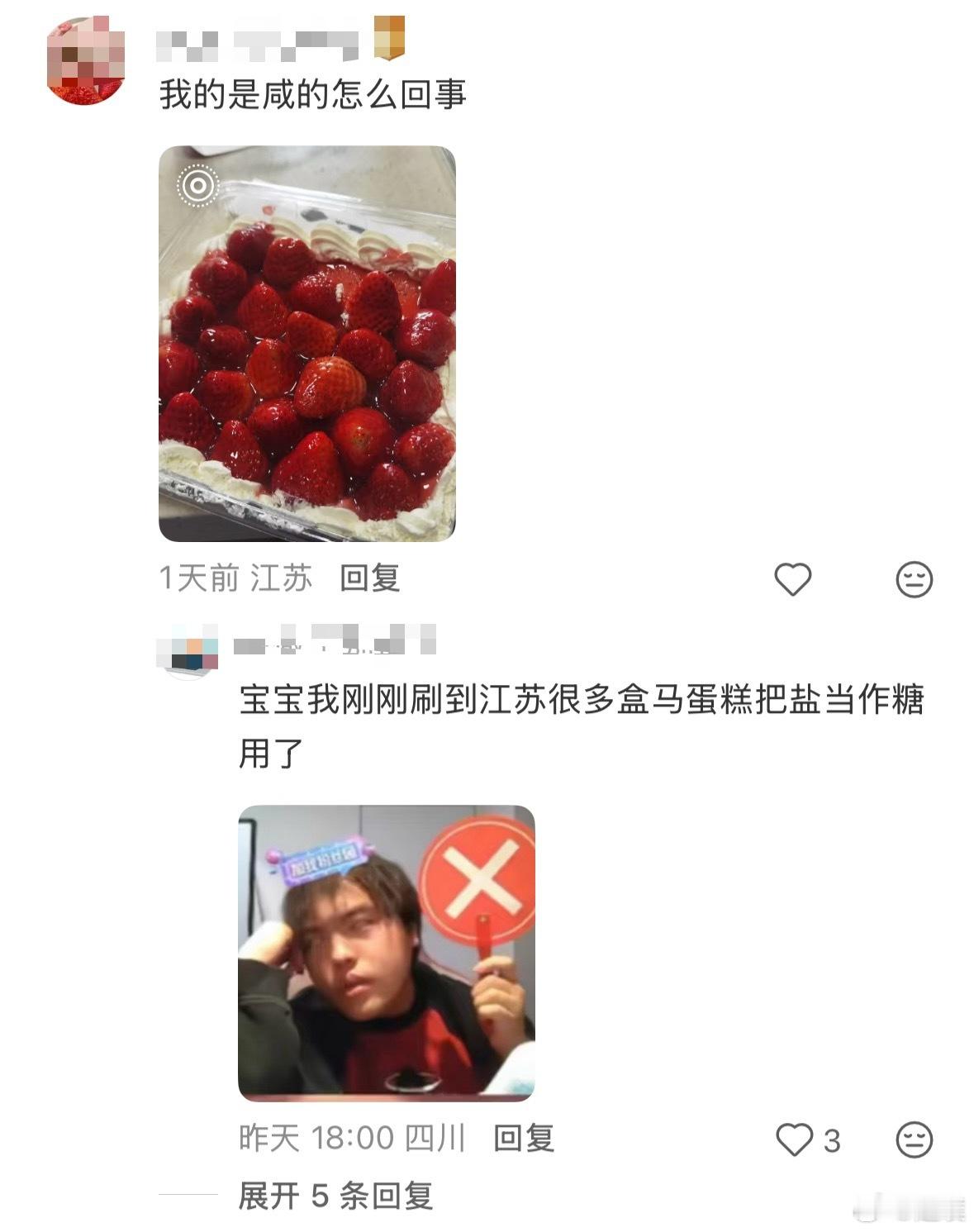 盒马承认生产草莓蛋糕出问题盒马居然还能出这种错误,做蛋糕把盐当成糖还有人买了之后