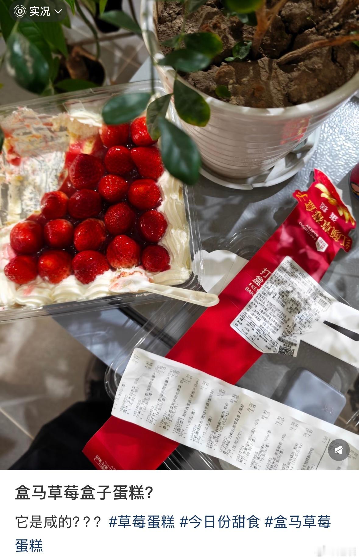 盒马承认生产草莓蛋糕出问题盒马居然还能出这种错误,做蛋糕把盐当成糖还有人买了之后很咸,以为是新产品,硬是吃完了。
