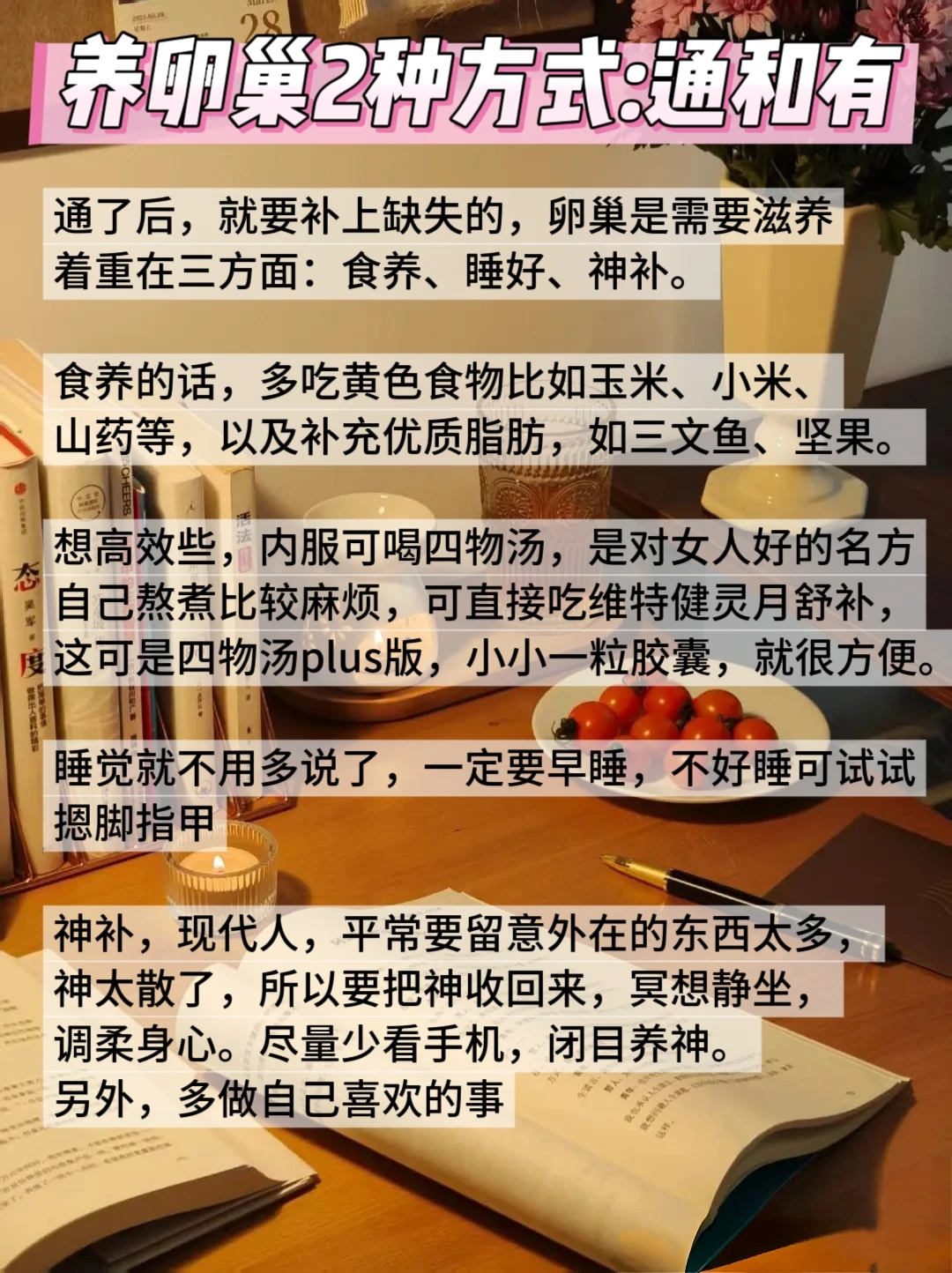我今年47岁92斤,经常被夸年轻。可以说,女人上了年纪想气色好,一定是姨妈好,卵巢年轻。 · 卵巢对我们女生有多重要呢?一个直观的表现,就是卵巢能调节姨妈周期。很多姐妹姨妈不规律,谁还没为姨妈提前或延迟焦虑过。就算来了,也是各种不安心。肚子疼、气色差,人看着很虚弱,而且颜色发黑,量少。这些都是在提醒我们该养卵巢了 · 所以,那如何养?其实无非做好加法和减法。 · [向右R]减法:少用脑、少胡思乱想、少说话、少用电子电子产品,专注做事一次做一件事 · [耶R]加法:养卵巢首先要睡眠充足要早睡; 其次是做好疏通,八段锦、泡脚、拍八虚等方式,把浊气排出; 然后是做好食养。吃饭尽量细嚼慢咽,戒高糖高盐重油食物,不要吃太饱,8点后就不要进食了。多吃黄色和红色食物,比如玉米、小米、山药等,日常可以喝五红粥。 · 想高效些,内服可以喝四物汤,这是自古对女人很好的名方,但上班族没时间,自己熬煮也比较麻烦,可直接吃维特健灵月舒补[赞R],这可是四物汤 plus 版,像里面的当归有助于面色好转、提升免疫力;两味白芍和熟地都能保护卵巢,还额外添加了圣洁莓,中西结合,更高效。 · 服用也很方便,小小一粒胶囊,每天2次,1次1~2粒。都是安全草本成分,,不用担心会给身体带来负担。姨妈调理好了,才能预防卵巢老化,想要保护卵巢的,放心冲就是。 · 总之,只有姨妈规律正常了,卵巢才会健康年轻,我们整个人才会看起来年轻,请各位女生务必尽早把护卵巢提上日程,你会庆幸自己的先见之明,拿捏住由内而外迷人的女性美。