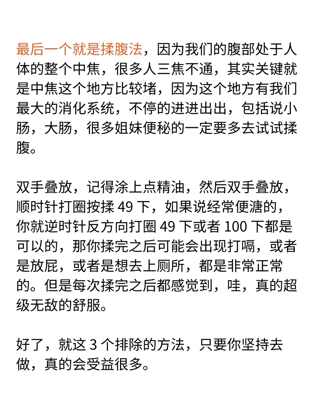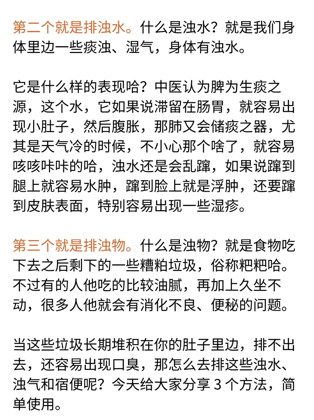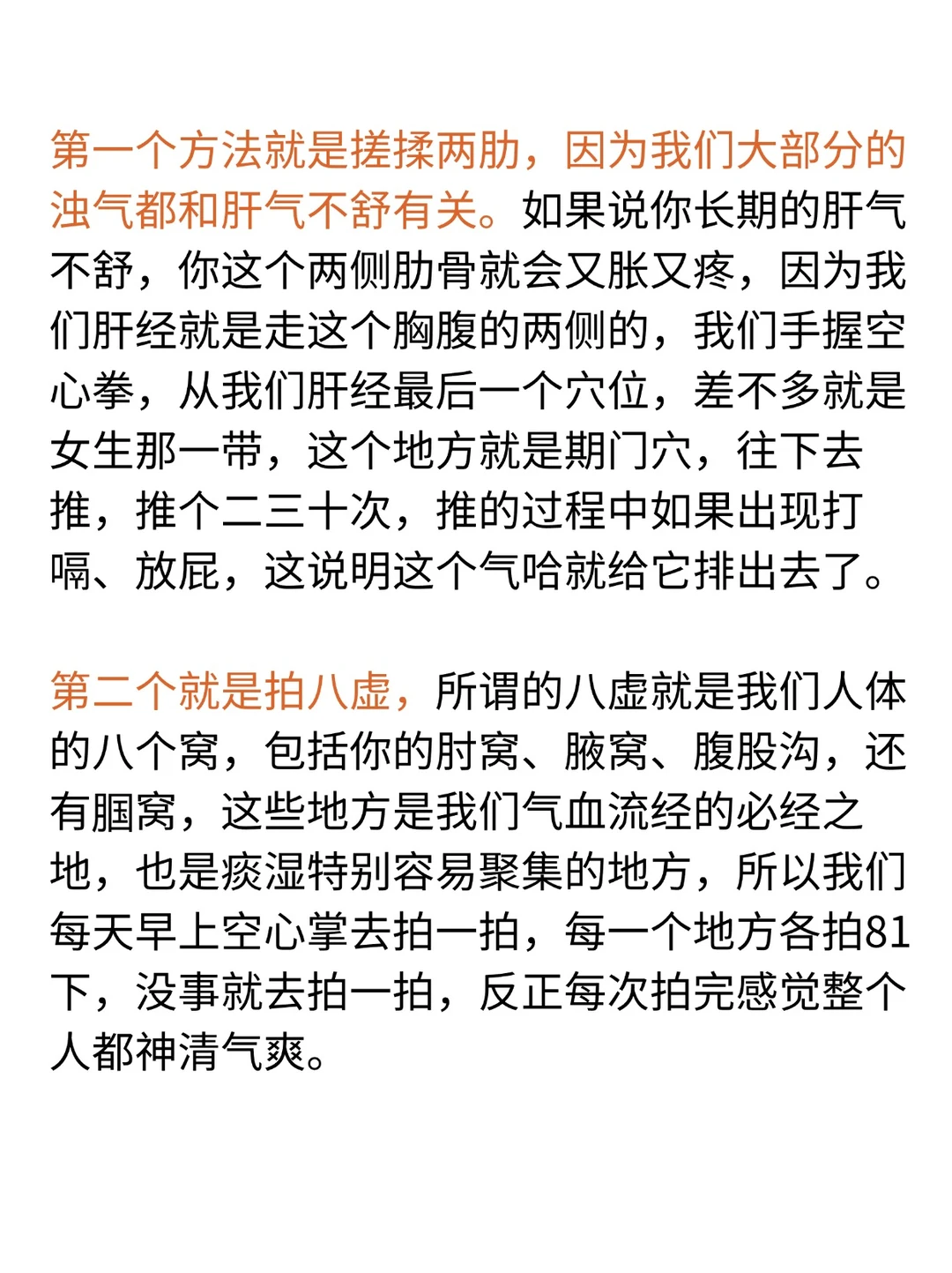 要先排浊才能长出新的气血。我们体内有三浊:浊水、浊气和宿便。怎么排? · 三个方法:搓揉两肋、拍八虚、揉腹