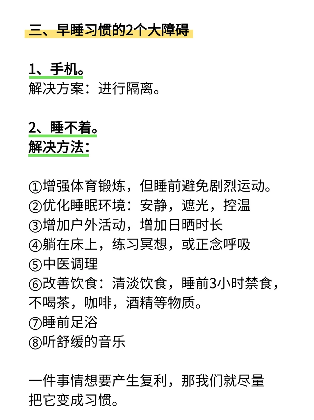 有个怪事,同样睡7个小时 晚上10.30睡,早晨精神焕发 而且脸色也好了,皮肤也白了 晚上12点1点睡,就不对劲 所以要顺应天地,按时睡觉 · 想早睡却老是熬夜的人,一定要先建立起自己的早睡系统,早睡晚睡真的不一样。