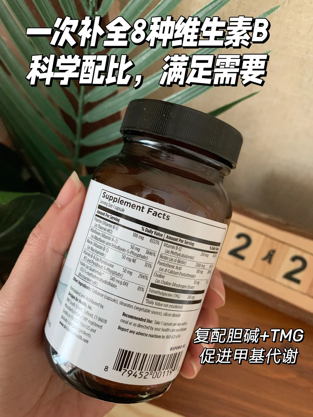 它包含8中维生素B,配比很科学,,身体吸收起来毫无压力。而且它还复配胆碱+TMG,促进甲基代谢,预防脂肪肝等代谢问题。每天随餐一粒,很是方便省事。