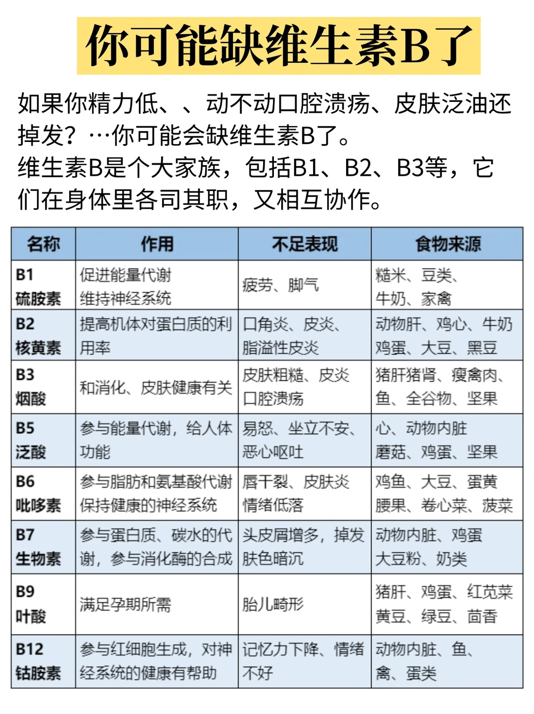 姐妹们有感觉到身体不给力,干啥都提不起劲?皮肤粗糙、头发一抓一大把?...这可能是缺维生素B在捣鬼!