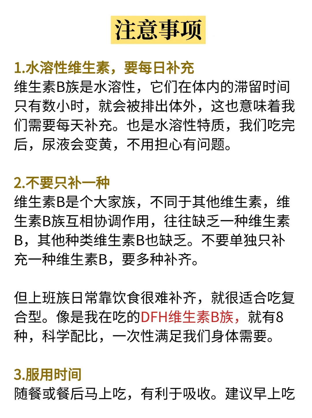 但上班族很难通过饮食无法满足需求,这时候就可以考虑维生素B补充剂。真心建议你们试试DFH维生素B族。毕竟是要内服,总得谨慎些挑选可靠,DFH在1989年就有了,妥妥经受了30多年的考验。别说!真是相见恨晚,吃一次有一次的正反馈,真的很感动。