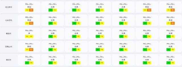 9日,大庆、齐齐哈尔、牡丹江、佳木斯、七台河、双鸭山地区,PM₂.₅与PM₁₀值分别大于70与100,空气质量处于良好至轻度污染状态,10日后空气质量转好,转为优良状态。