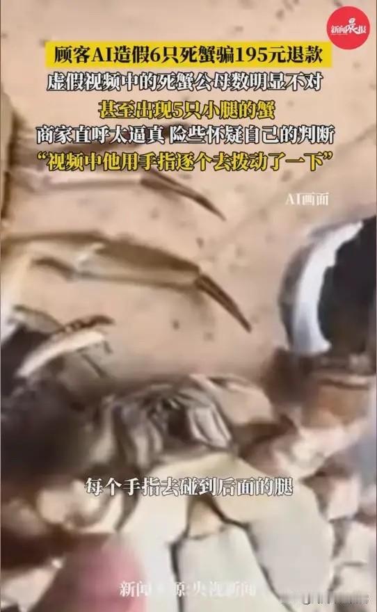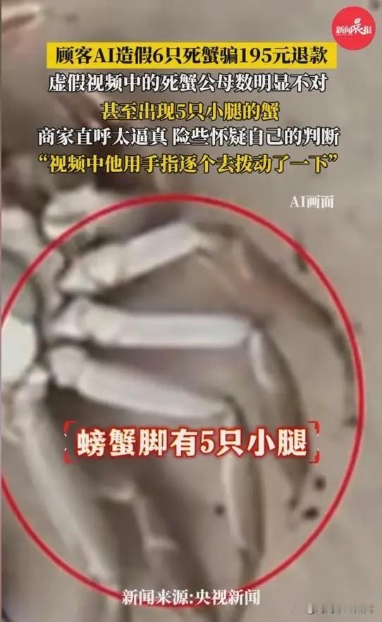 “活不起了!”近日,江苏苏州,一商家接到一笔订单,顾客买了8只螃蟹,说死了6只,并发来图片和视频证明,虽然后来给顾客退了款,但还是发现,顾客发来的死蟹图片视频疑似AI合成,于是商家将视频曝光在网上,却被顾客一直举报威胁。 水产店老板最初没多想,顾客通过外卖平台下单,收到货后很快发来消息,说八只螃蟹里有六只不动弹,还附上照片和短视频。照片里螃蟹确实看起来没生机,老板怕影响店铺评分,干脆利落地退了款。 事情过去两天,老板越琢磨越不对劲,他重新点开顾客发来的视频,发现死蟹的轮廓边缘有些模糊,和周围环境的光影不太协调。最奇怪的是,有张图片里,一只螃蟹的小脚数量明显不对,像是数字合成的痕迹。他把视频截图放大仔细看,越看越觉得像是用技术手段处理过的。 这类利用伪造证据进行恶意投诉的情况,在线上交易中并不少见。有的投诉者会反复使用同一张带有“异物”的照片向多家商家索赔;也有人专门利用平台规则偏向消费者的倾向,以差评威胁要求退款。商家往往为了息事宁人,避免差评影响生意,选择吃哑巴亏。 老板把遭遇和疑点做成视频发到网上,想提醒同行注意,没想到,那位顾客很快找上门,不是来理论,而是接连举报他的社交账号,还发私信威胁,让他“赶紧删视频,不然让你做不成生意”。 现在很多造假视频用AI生成,普通人很难分辨。有人会用AI伪造热点事件图片,甚至捏造名人言论来博取关注或牟利。不过AI生成的内容通常有迹可循,比如物体边缘可能生硬,光影细节可能不合常理等细节。遇到存疑的图片或视频时,可以留意这些细节,并核查其来源是否权威,逻辑是否合理。 这位老板的坚持,不只是为了几只螃蟹的损失,如果这种风气蔓延,以后谁还敢踏踏实实做线上生意?每一次无原则的妥协,可能都是在助长不诚信的行为。 各位读者你们怎么看?欢迎在评论区讨论。
