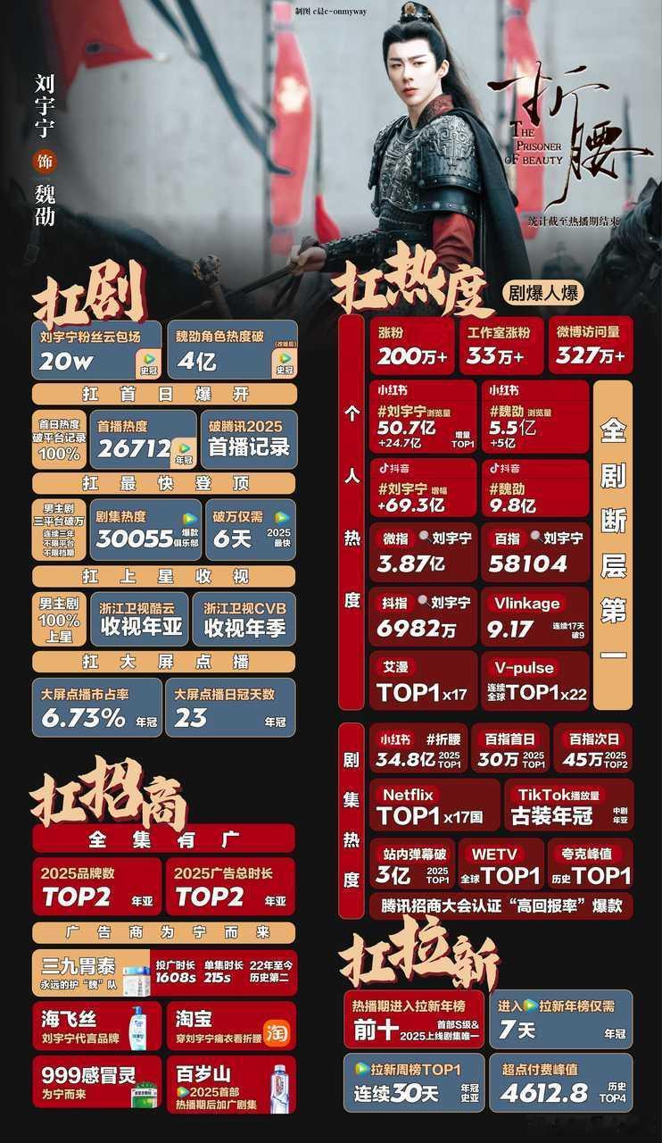 腾讯V7V8年度礼盒宣传图含刘宇宁《折腰》中的歌曲“烽月”,刘宇宁饰演的魏劭今年