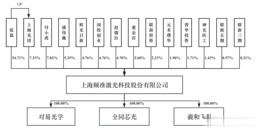 IPO后,张磊持股为41.04%,付小虎持股为5.86%,上海光团持股为5.5%,潘伟巍持股为3.94%,辉光日新、国投创业分别持股为3.57%,赵儒臣持股为3.53%,董金岩持股为1.95%,联新投资持股为1.67%,元禾璞华持股为1.43%,普华投资持股为1.28%,神光医工持股为1.07%,联新五期持股为0.43%,联新三期持股为0.16%。