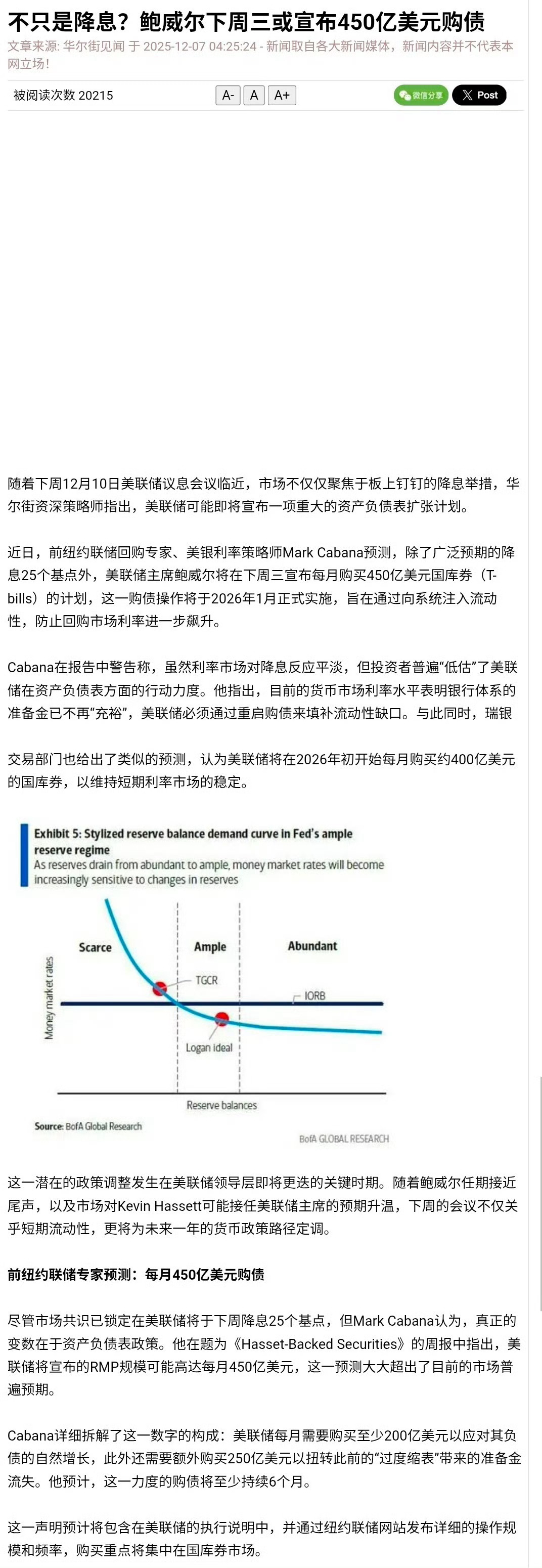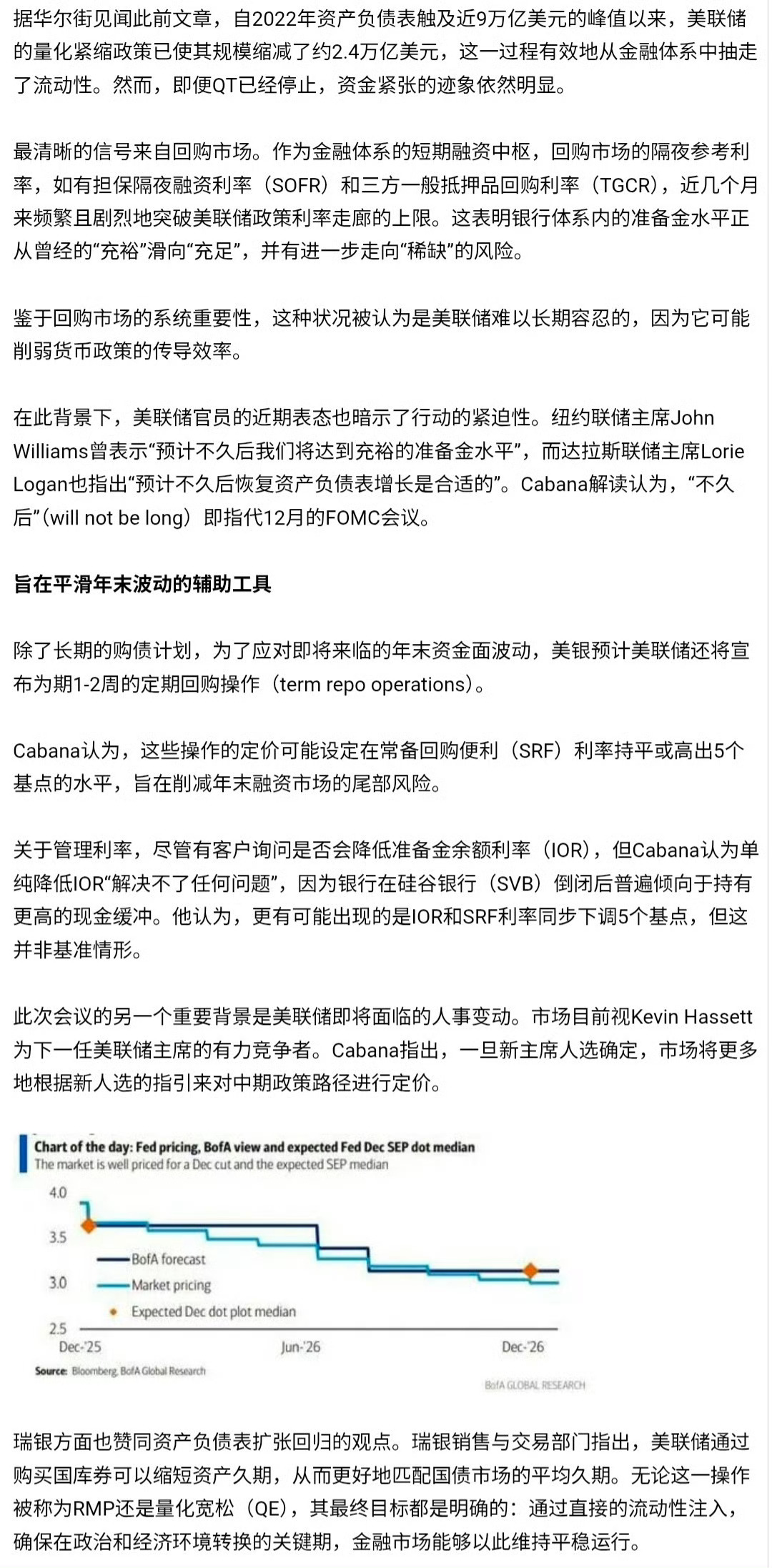 今晚明晨,焦点不在美联储降息是否落地,而是扩表何时落地?它对后世资本市场有什么影