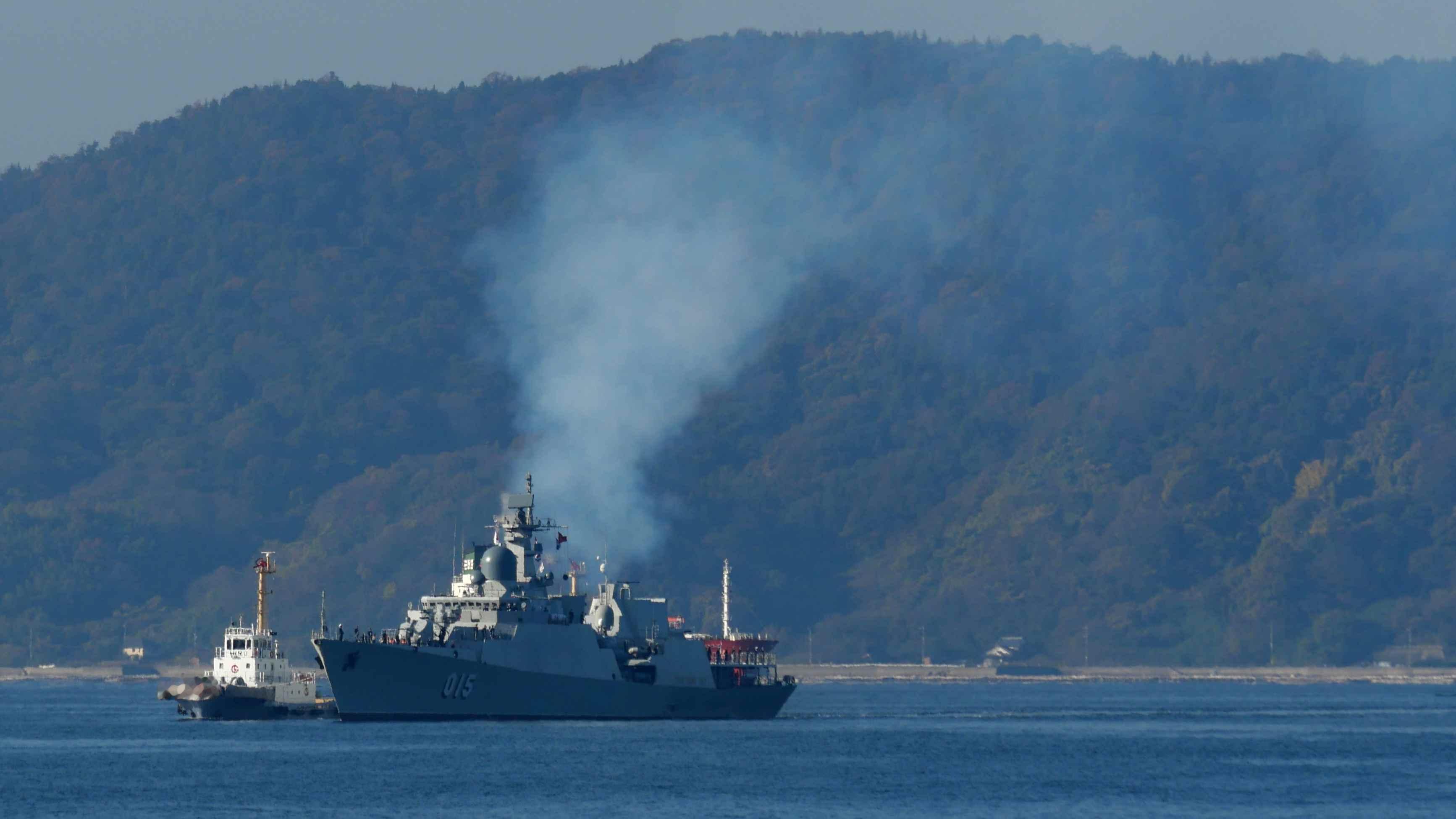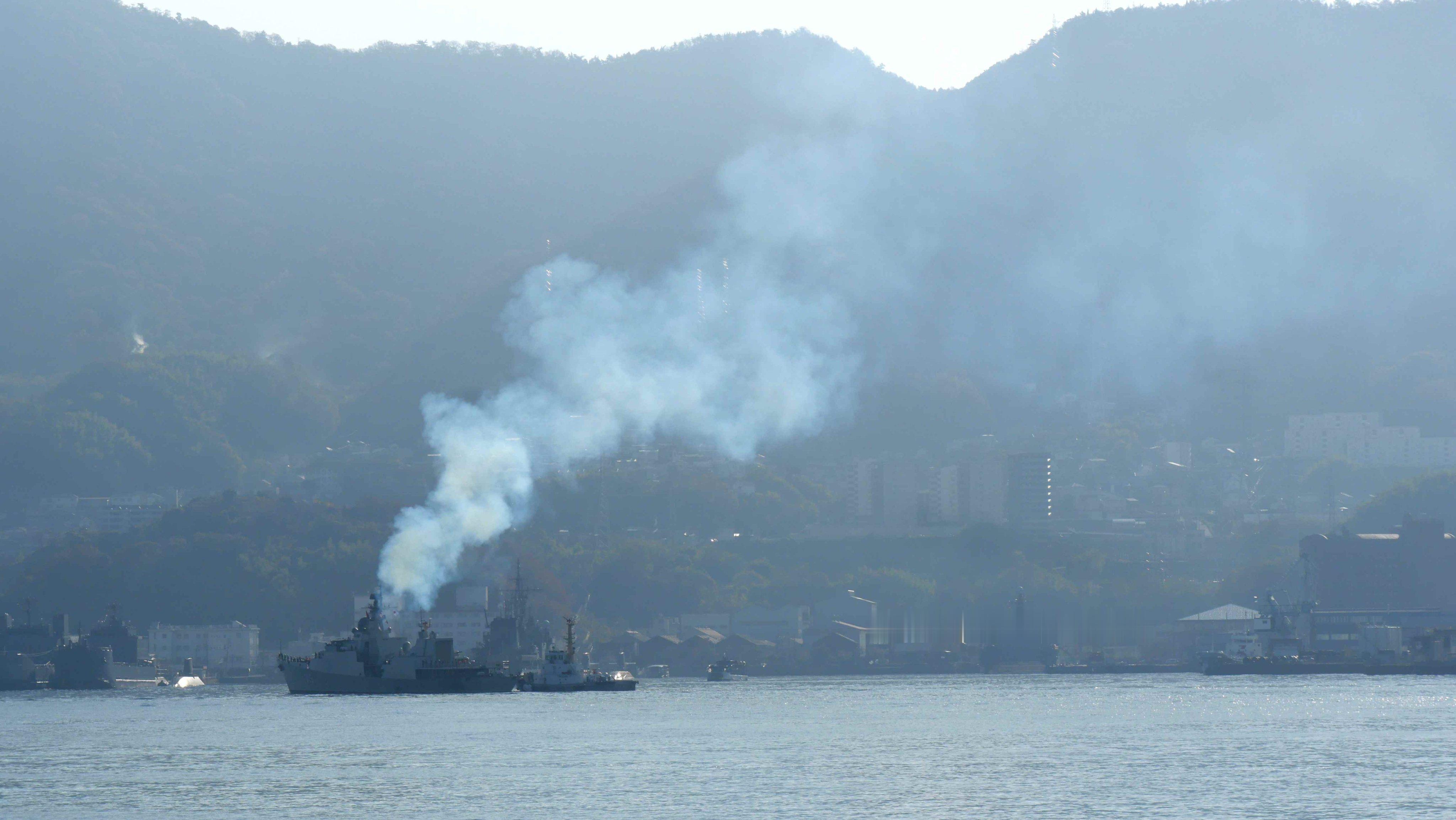飞扬军事 日本的GTW表示,在江田岛上都能看到准备停靠吴港的越南海军护卫舰上升起的浓烟
