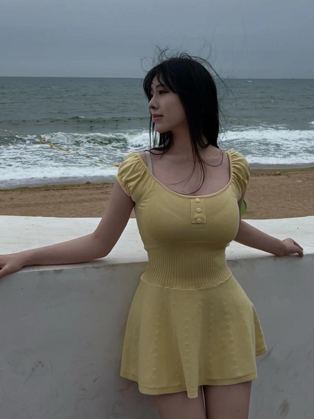 《海风轻拂》 海天一色远山横,沙滩细软海风轻。 佳人独立墙边立,黄裙飘逸似流金。 长发随风轻舞动,仰面朝天思悠悠。 海浪轻拍岸边石,涛声如歌伴佳人。 云层密布天色暗,海面波光映日斜。 远处人影依稀见,沙滩漫步意悠然。 此景此情难言表,唯有诗心最知音。 海风轻拂裙角起,佳人独立画中行。