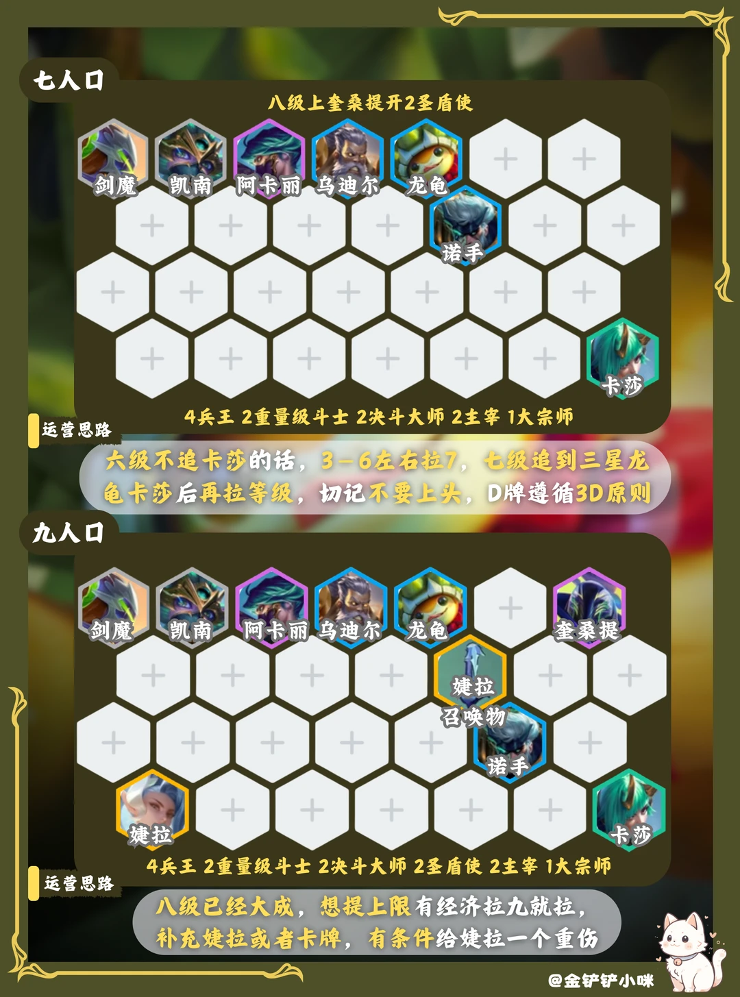 5️⃣阶段想提上限且有经济可以拉九,九级补婕拉或卡牌