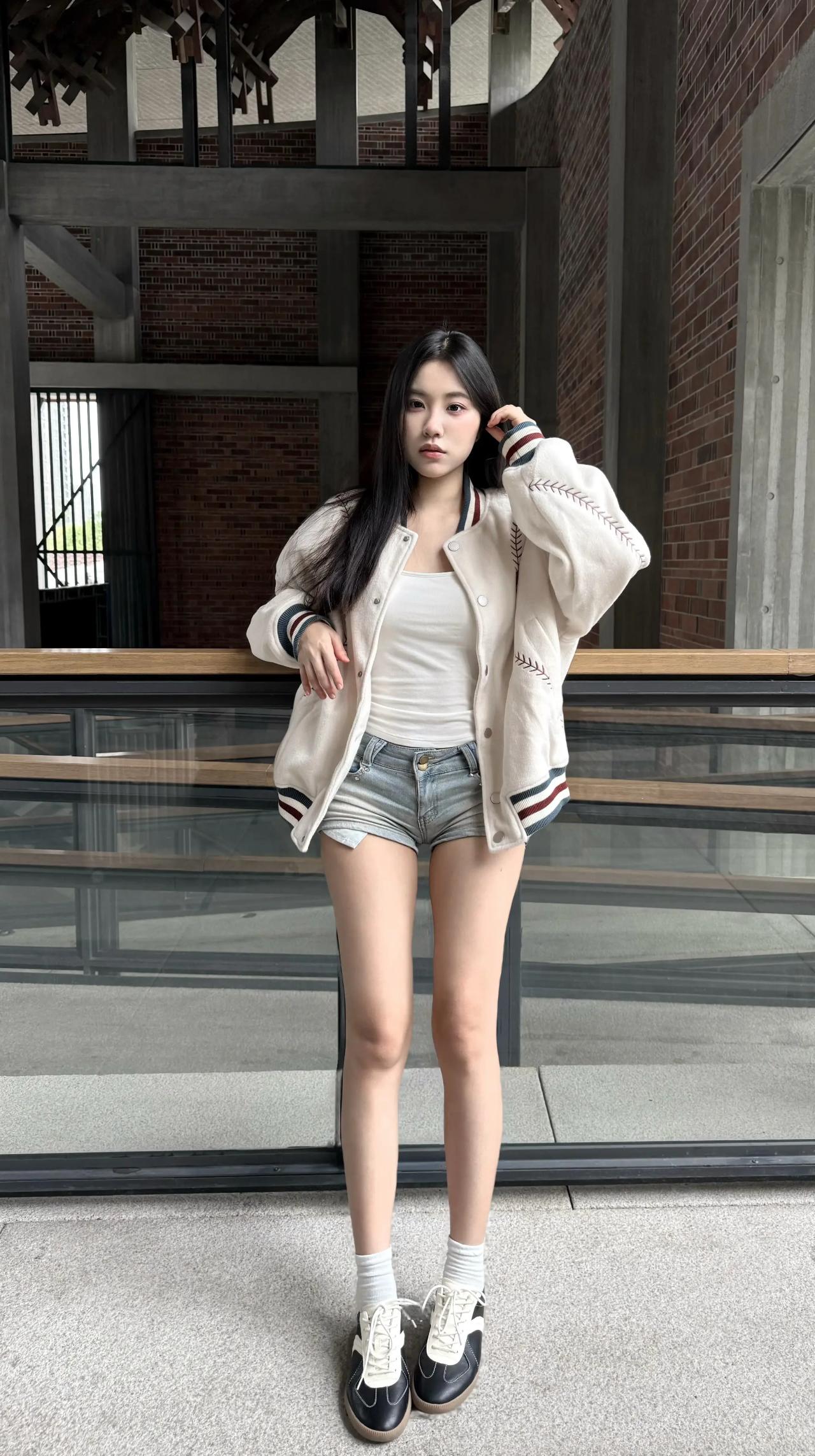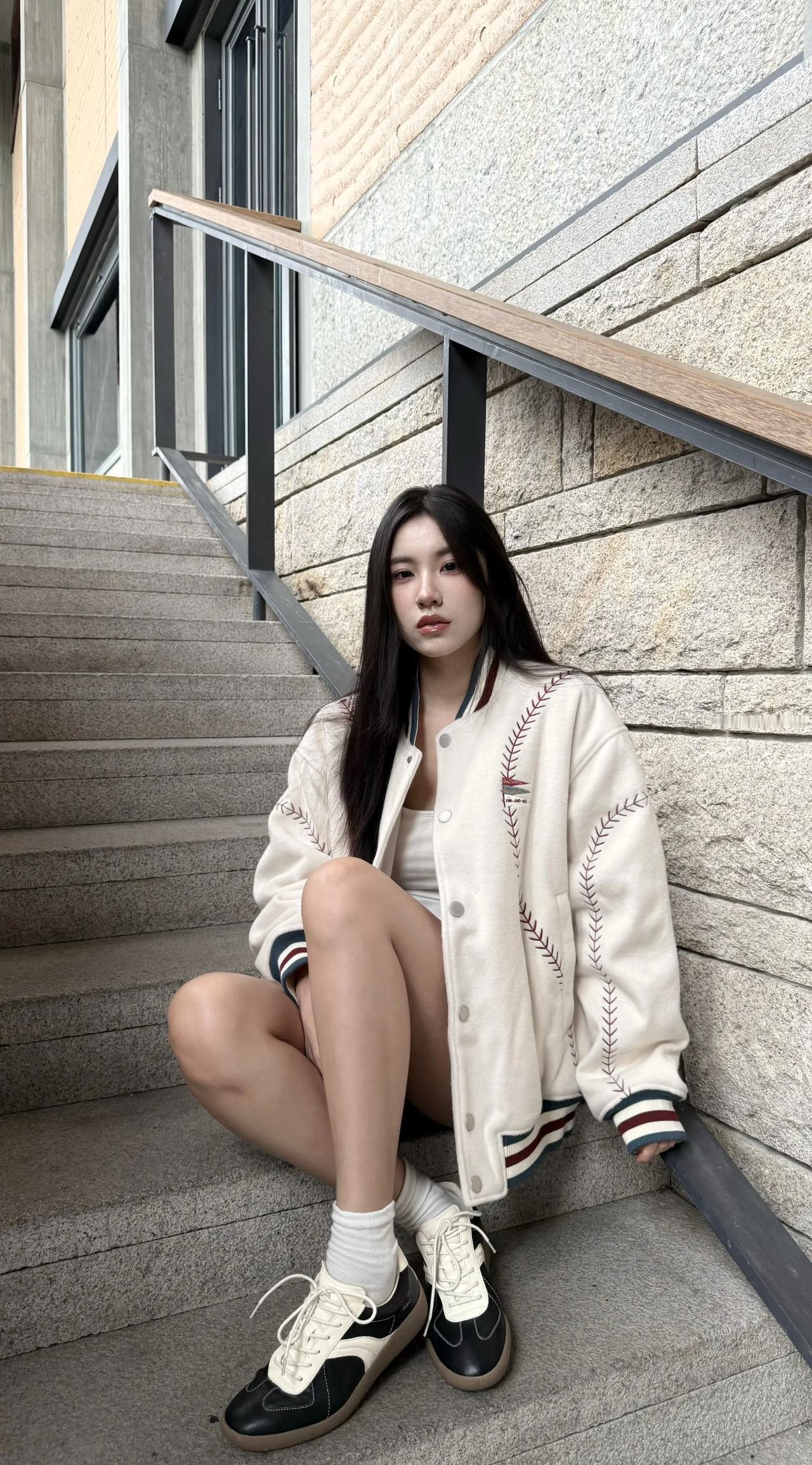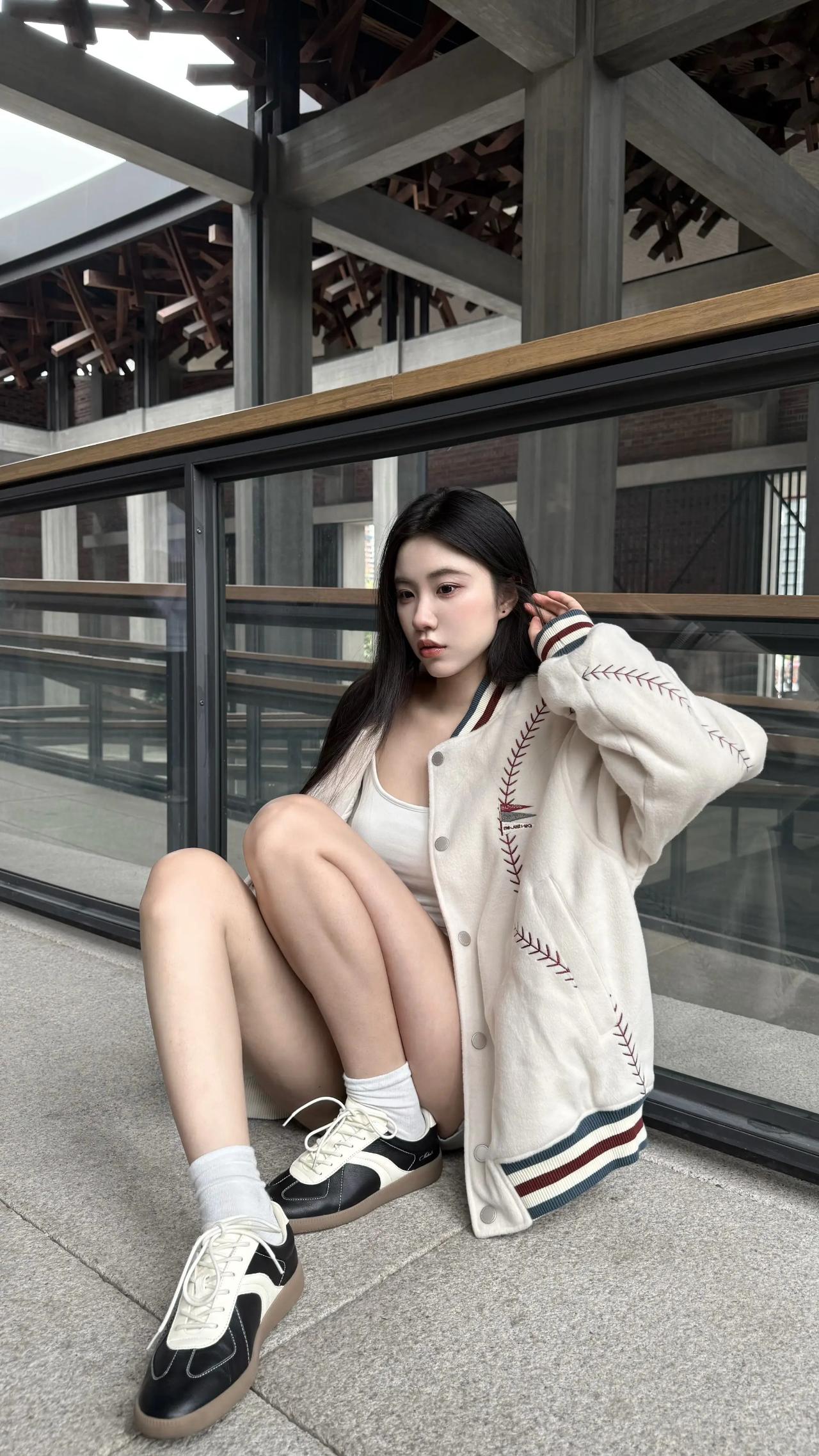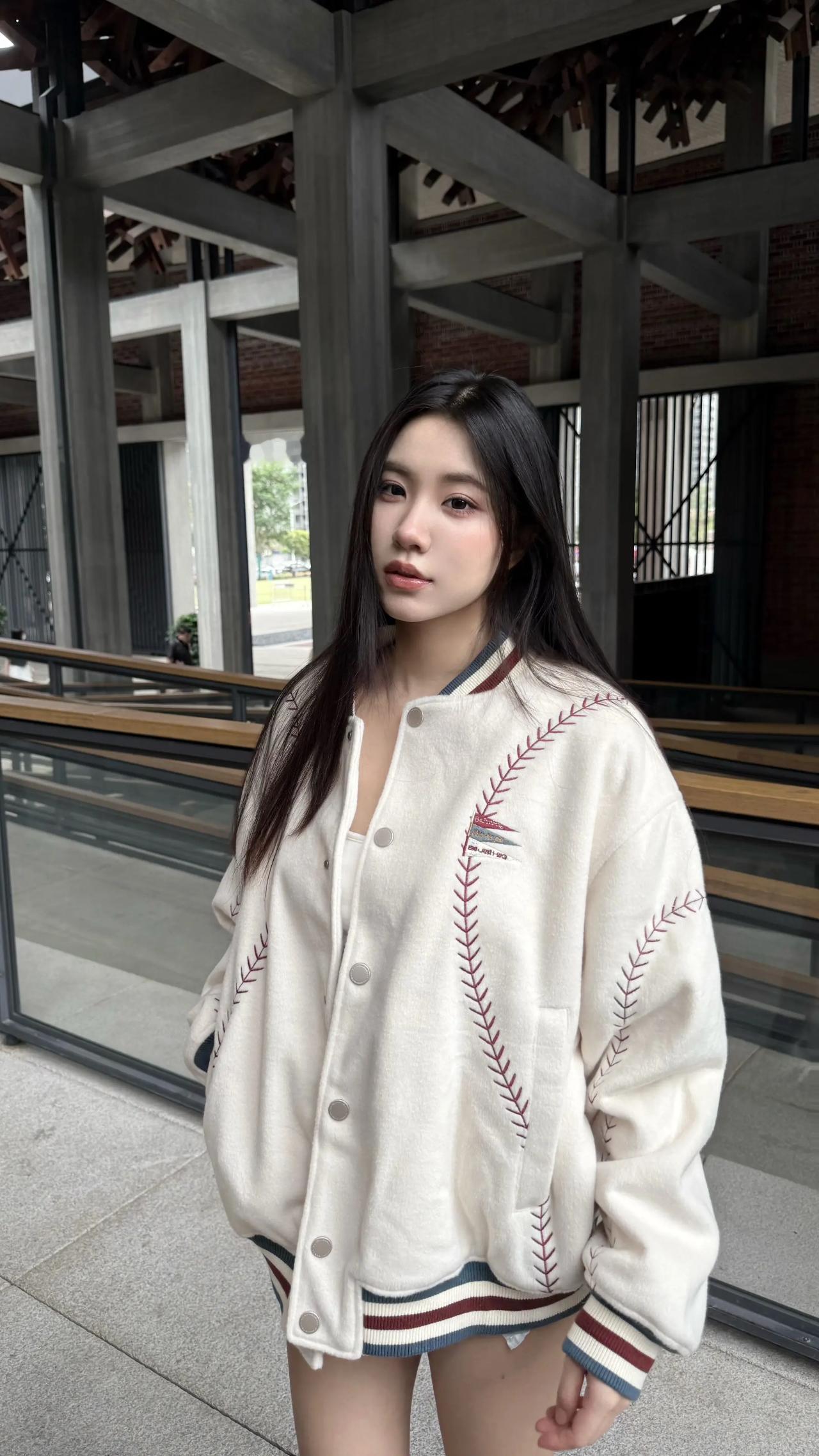 米白棒球服配白内搭穿搭!!