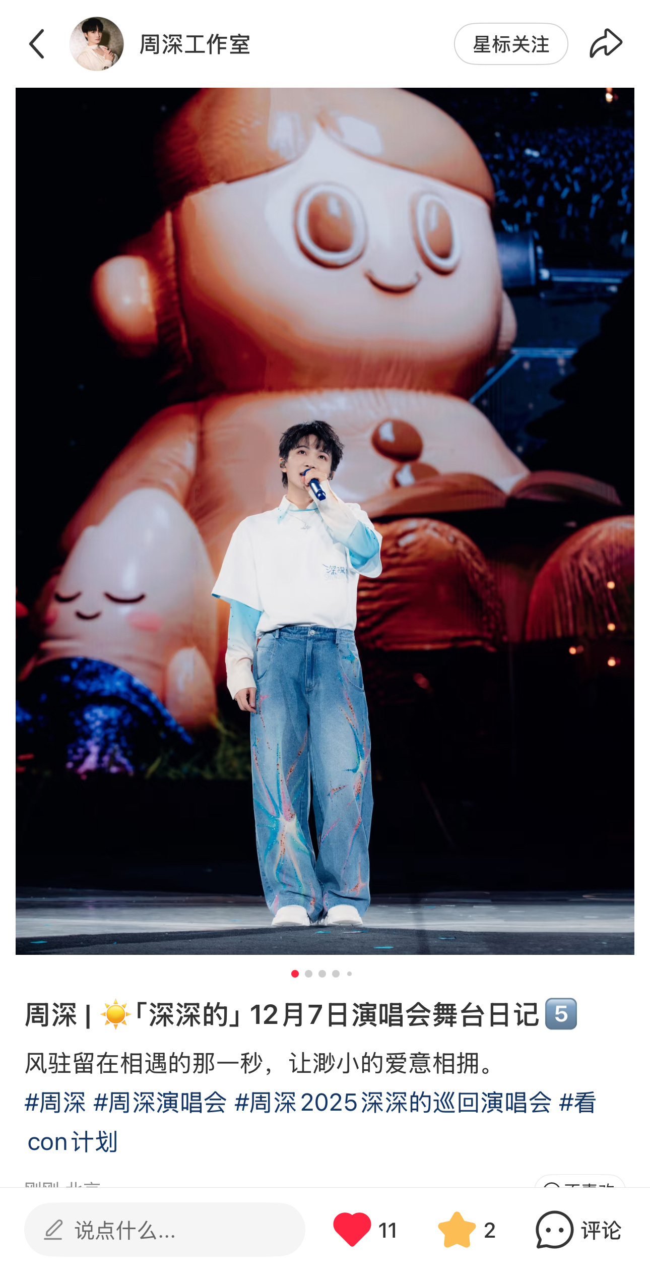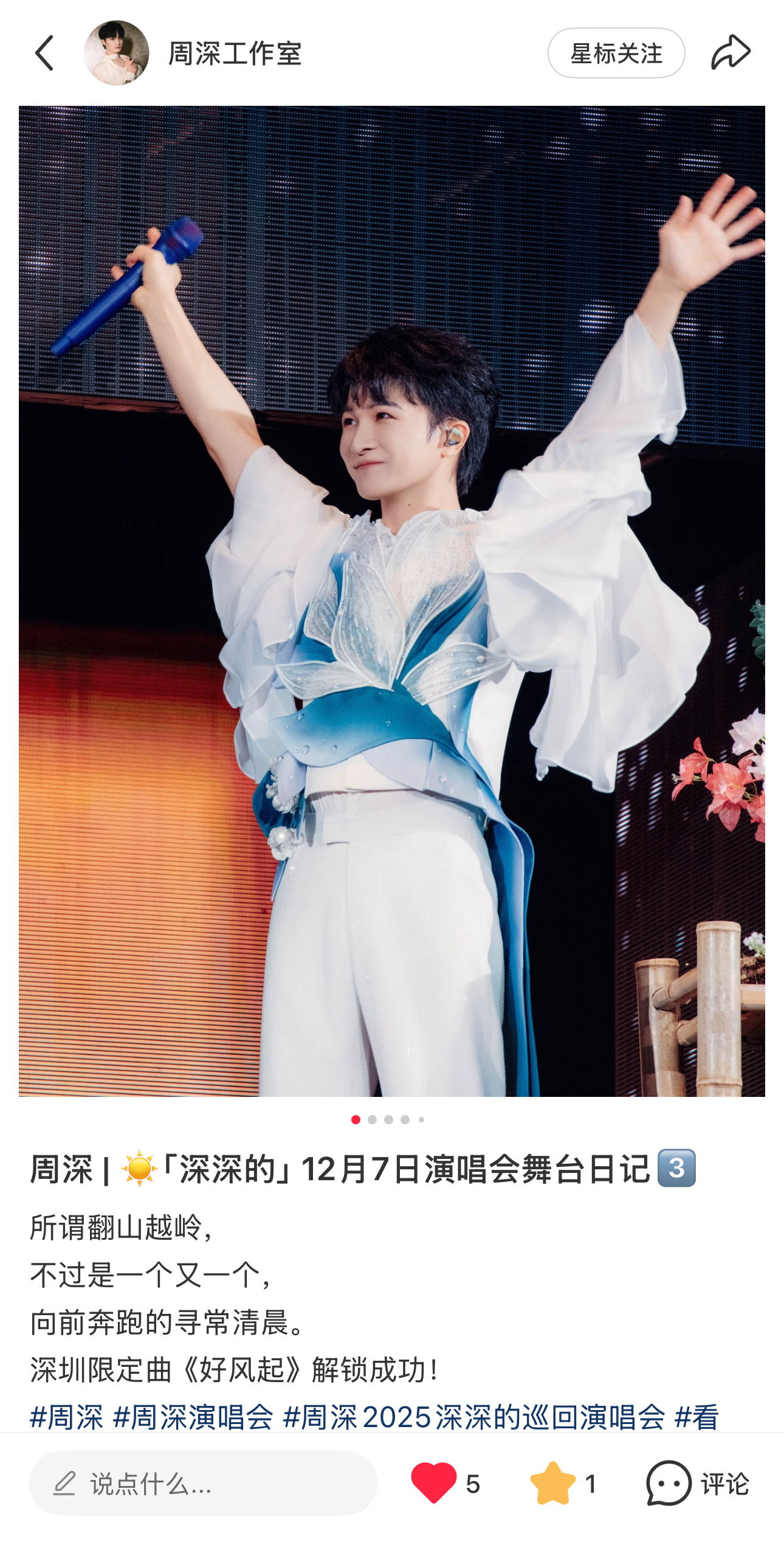 周深 📣 12.8 小📕书物料 📣【周深工作室】小📕书更新了深深深圳演唱会day2的演唱会舞台日记1️⃣2️⃣3️⃣4️⃣5️⃣多多四连【⭐🍎🧱】
