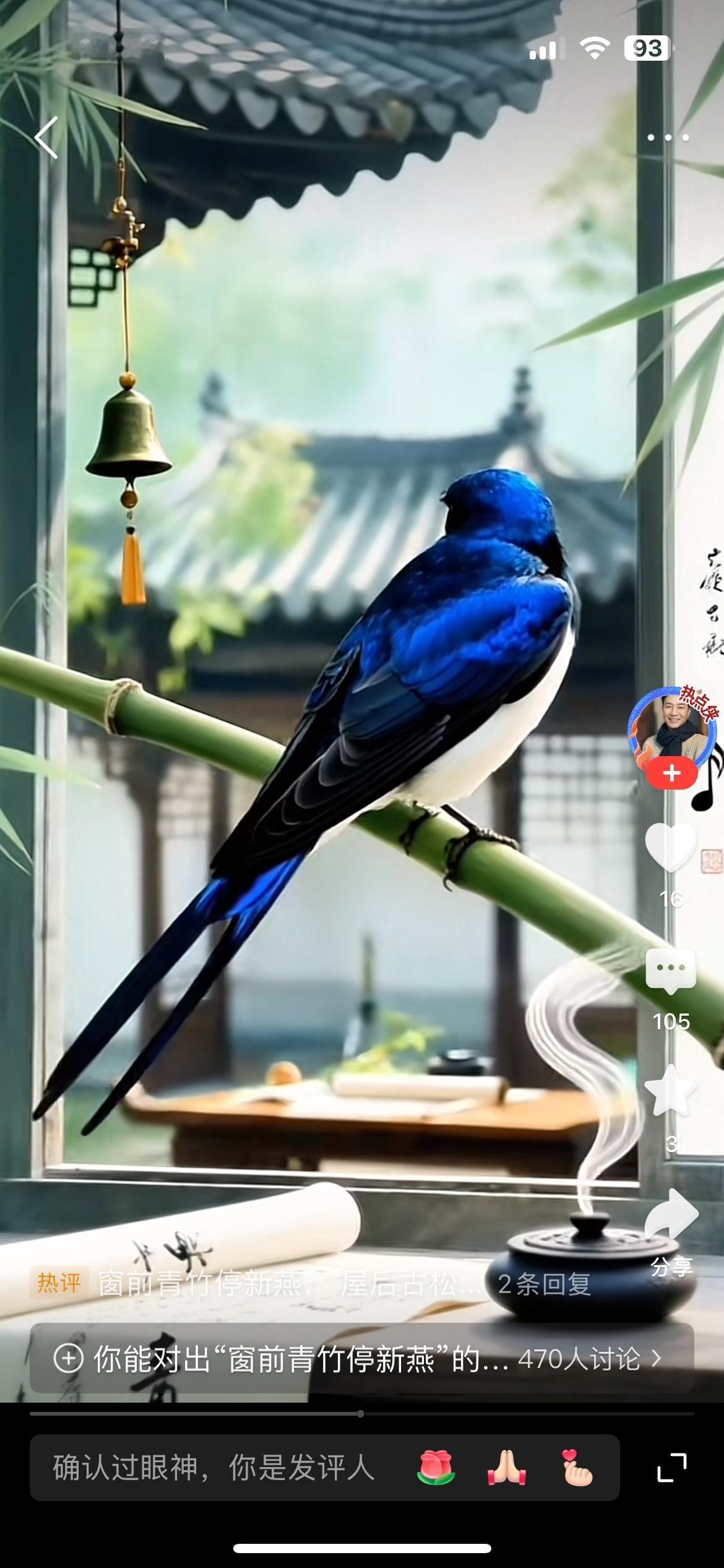 湖山眠静夜, 紫燕爱晴天。 横批:《湖山与紫燕》