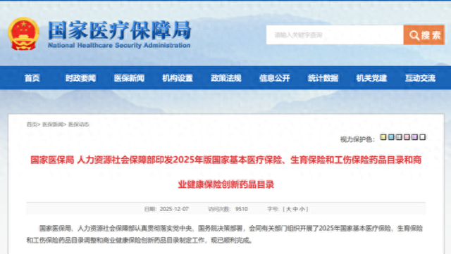 12月7日,2025年国家医保药品目录及首版商保创新药目录发布。2025年国家医保药品目录成功新增114种药品,有50种是一类创新药,总体成功率88%,较2024年的76%明显提高。19种药品纳入首版商保创新药目录。新版目录将于2026年1月1日在全国范围内正式实施。