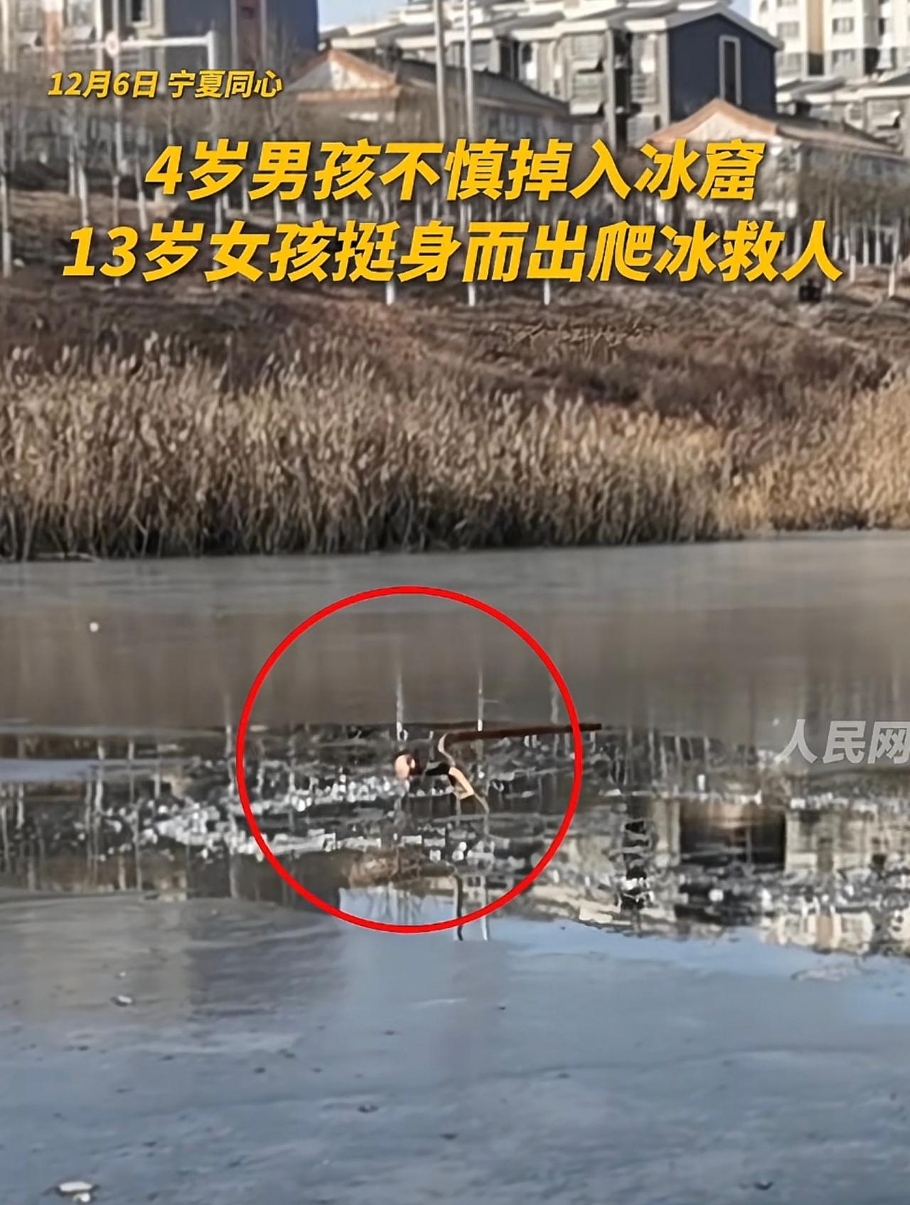 13岁女孩,从冰窟窿里勇救4岁落水男孩,人民日报点赞! 事情发生在宁夏,薄薄的