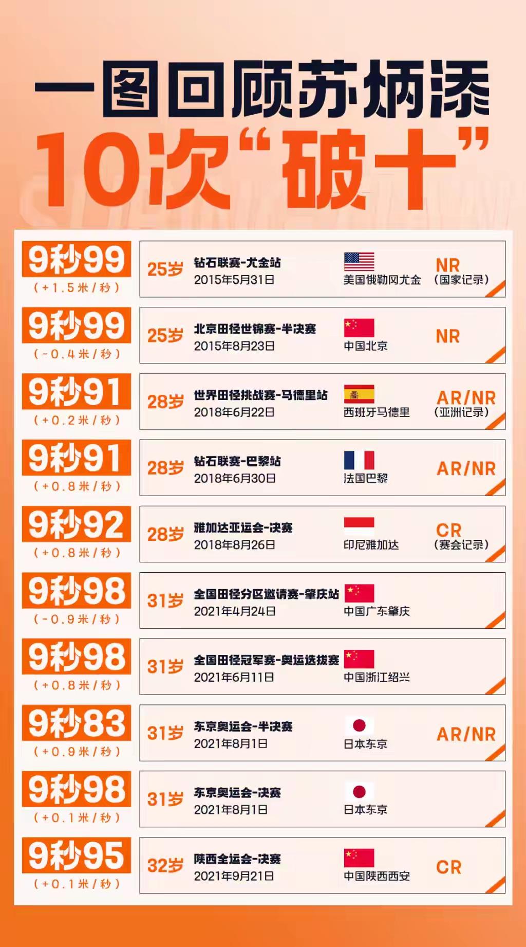 今天,苏炳添正式宣告退役了。 再见,苏神!你是黄种人的骄傲!生涯十次跑进十秒内,太牛了! 正如你所写的,9秒83不只是数字,它是一束光,未来定能照亮更多中国短跑少年踏歌前行! 二十一载跑道时光,对于短跑运动员来说,其实已经不短了,能在跑道上坚持这么长时间太难,太难了。多少运动员倒在伤病的折磨中,不得不带着遗憾离开,而你这些年来依然坚持着,你用坚韧不拔的行动告诉后来者“只有坚强不息的人,才能够梦想成真!”是的,你做到了! 若说有遗憾,可能就是未能登上奥运最高领奖台吧!但是,你的成就和贡献早已超越那块奖牌🏅的定义,因为你打破了世人对黄种人在短跑领域的偏见,让后来者看到未来登顶的曙光! 致敬,苏炳添“苏神”。让我们为他点个赞[赞]吧!