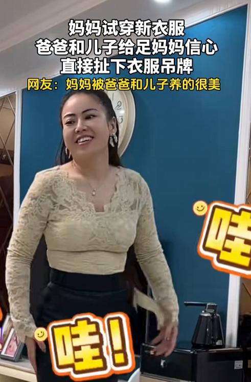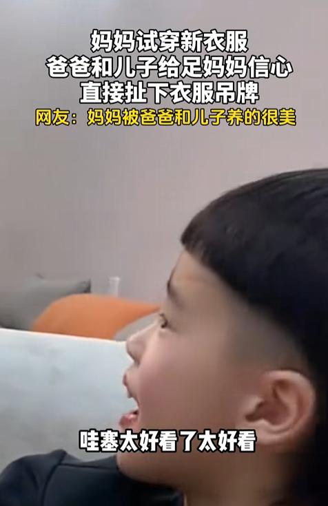 还犹豫啥啊?河北,一名女子在网上购买了一套衣服,在镜子前面做左照右照的犹豫不决,嘴里还念叨着:“颜色是不是太亮了”?“是不是显胖啊”? 坐在旁边的父子俩个把女子的表情纠结情绪全部都看在眼里! 儿子说:这件衣服也太好看了,妈妈真漂亮! 爸爸说:这件衣服挺适合你的,来转个圈,让我看看。 就这样,女子在父子俩的恭维声中找到自信,咔嚓一下,就把吊牌给拽了下来。 有网友说:买衣服不要让男人参谋,他为了早回家。只会说好看好看,实则买回来一点也不好看,我老公要陪我去我都不要他,和闺蜜出去可以多逛一会,货比三家才能买到满意的衣服。 也有网友说:我觉得一点也不胖啊。真的很好看,女性生完小孩后有点小肚子小赘肉不是很正常的吗?人家穿出来确实好看啊 还有网友说:别管好不好看,最起码情绪价值是满满的。 说真的,这件衣服或许贵、或许便宜,穿在身上或许好看、或许难看。但在丈夫和孩子的眼中,只要是穿在你身上的,那就是最适合、最好看的。 其实,爱在很多的时候并不需要什么轰轰烈烈,就是在她自我怀疑的时候,给他一个肯定的眼神,一个肯定的态度。这些就足够了!