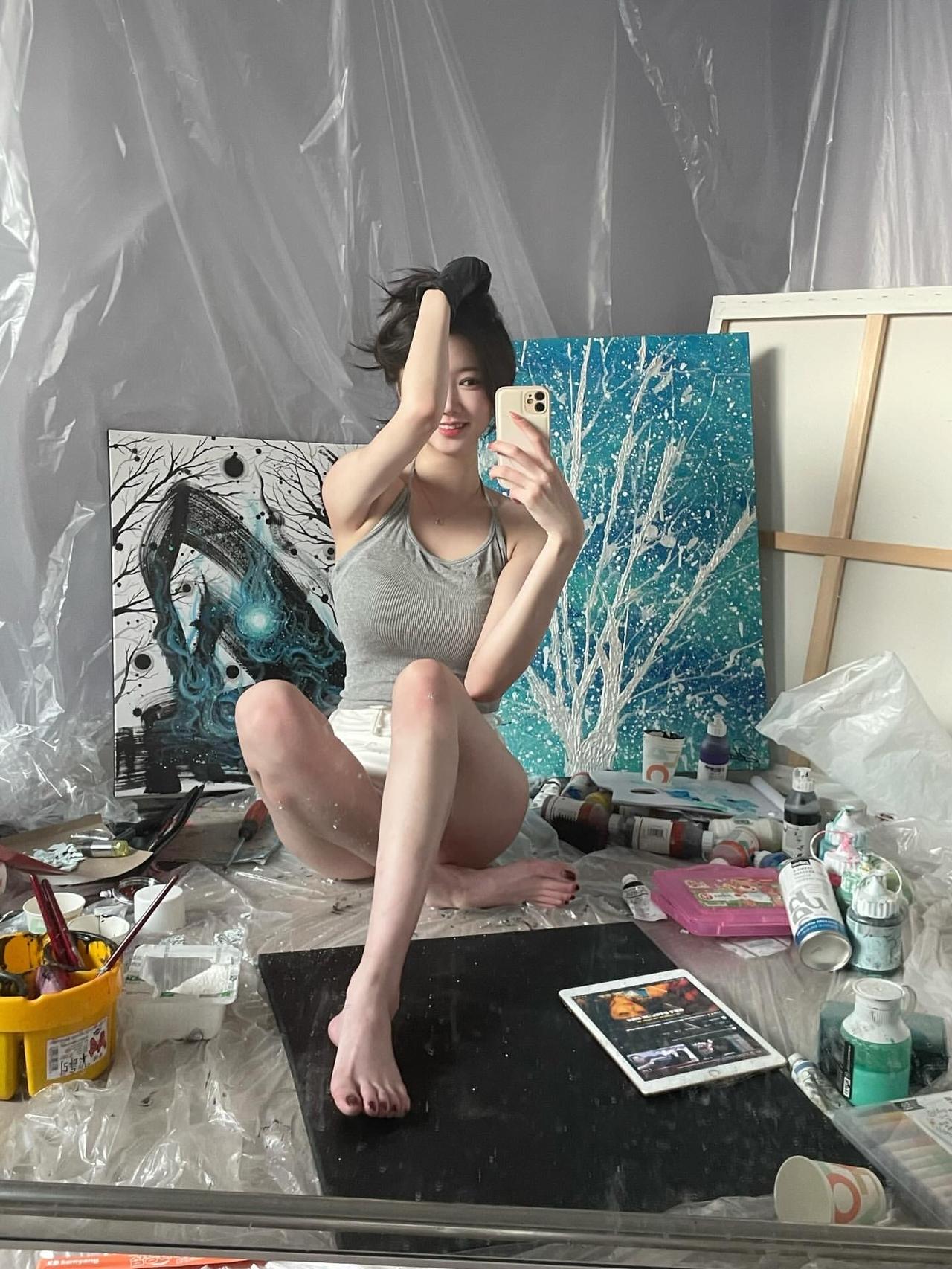 艺术创作中的少女,手持画笔,沉浸在色彩的世界里。[笑]