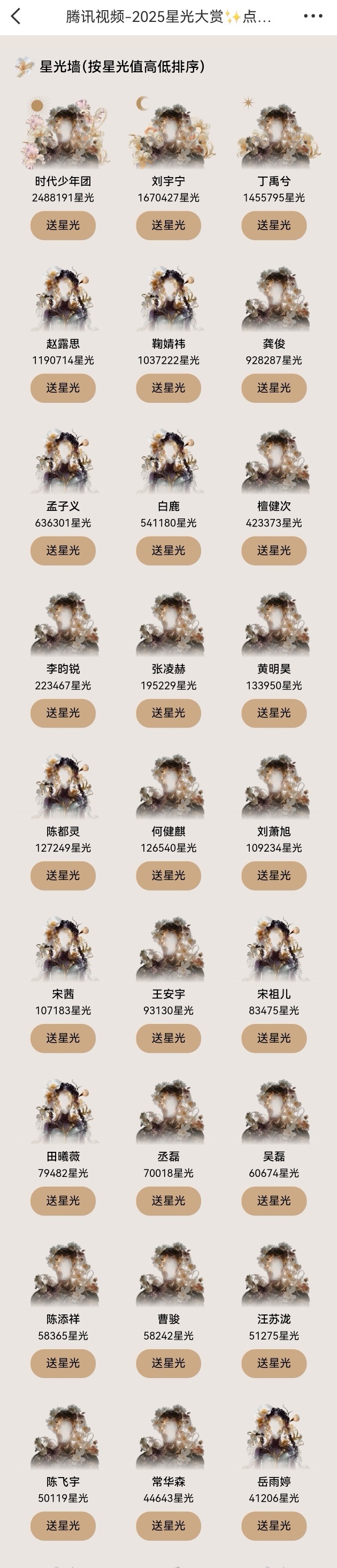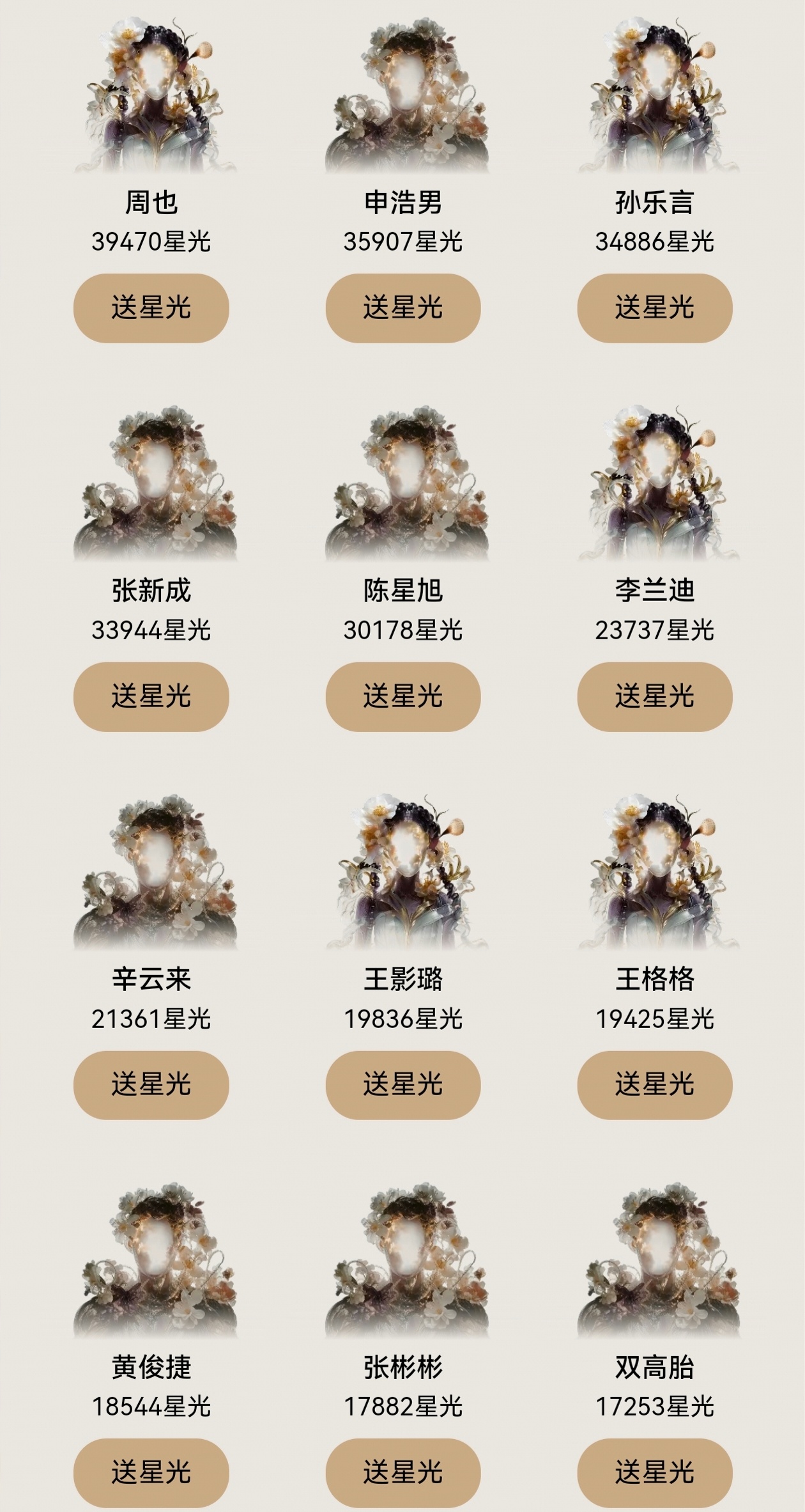 星光大赏星光墙最新战况: 星光大赏投票 星光大赏星光值排名 星光大赏单人海报