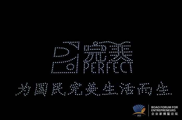 系列活动期间,完美公司点亮博鳌夜空,2025架无人机在博鳌夜空绘就璀璨画卷,科技与人文交融、光影与初心相映。
