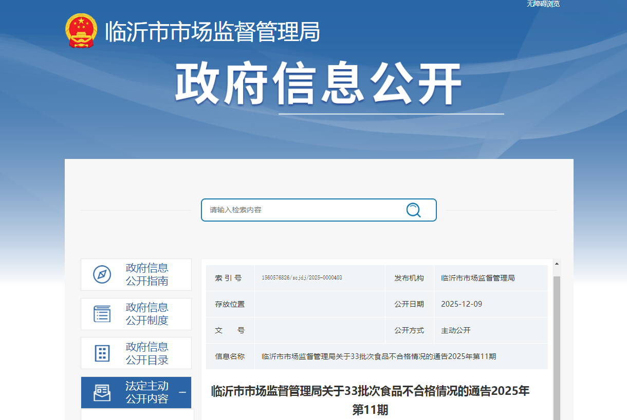 根据《中华人民共和国食品安全法》及其实施条例等有关规定和临沂市食品安全监督抽检计划安排,为进一步保障食品安全,市市场监督管理局对餐饮食品、食用农产品、粮食加工品等14大类食品1622批次样品进行了监督抽检,其中食用农产品、餐饮食品、调味品等12大类食品33批次样品不合格,检出农药残留、兽药残留、食品添加剂超标等。