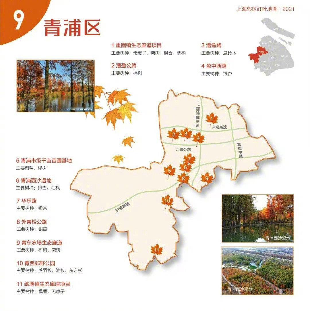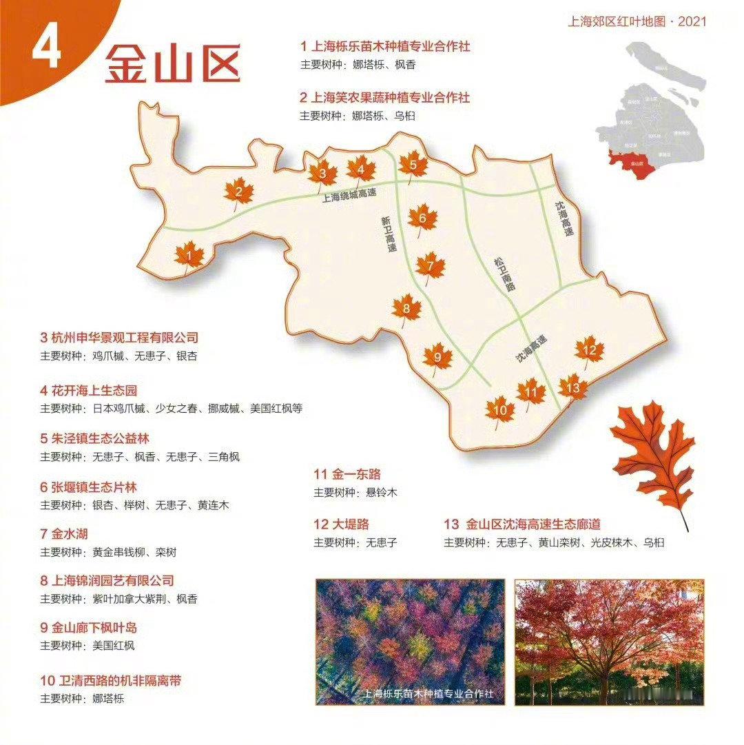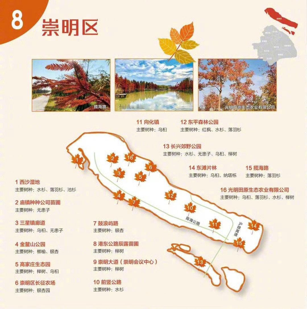 【这里是上海】又是一年深秋时,随着天气慢慢转凉,色叶树纷纷变了颜色。红枫、乌桕、水杉、银杏……红色、黄色的彩叶树把魔都浸入了彩色世界。今年,上海郊区红叶地图又与大家如约而至,地图标注了色叶树种分布较为集中的路段、公园、片林、生态廊道和苗木基地!今年你要去哪里观赏呢?