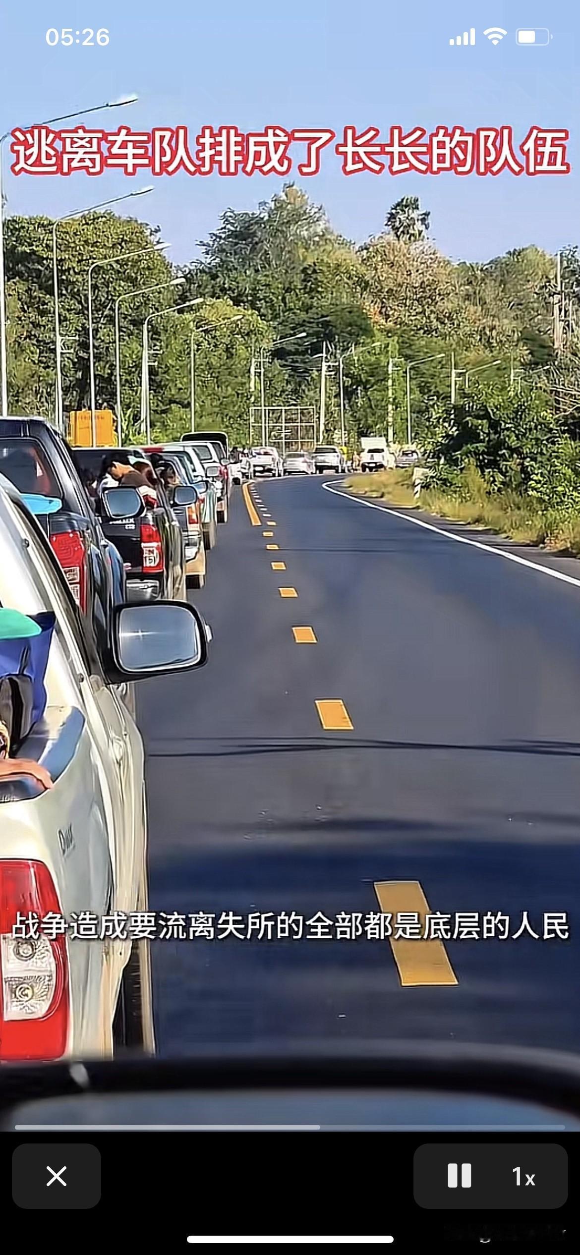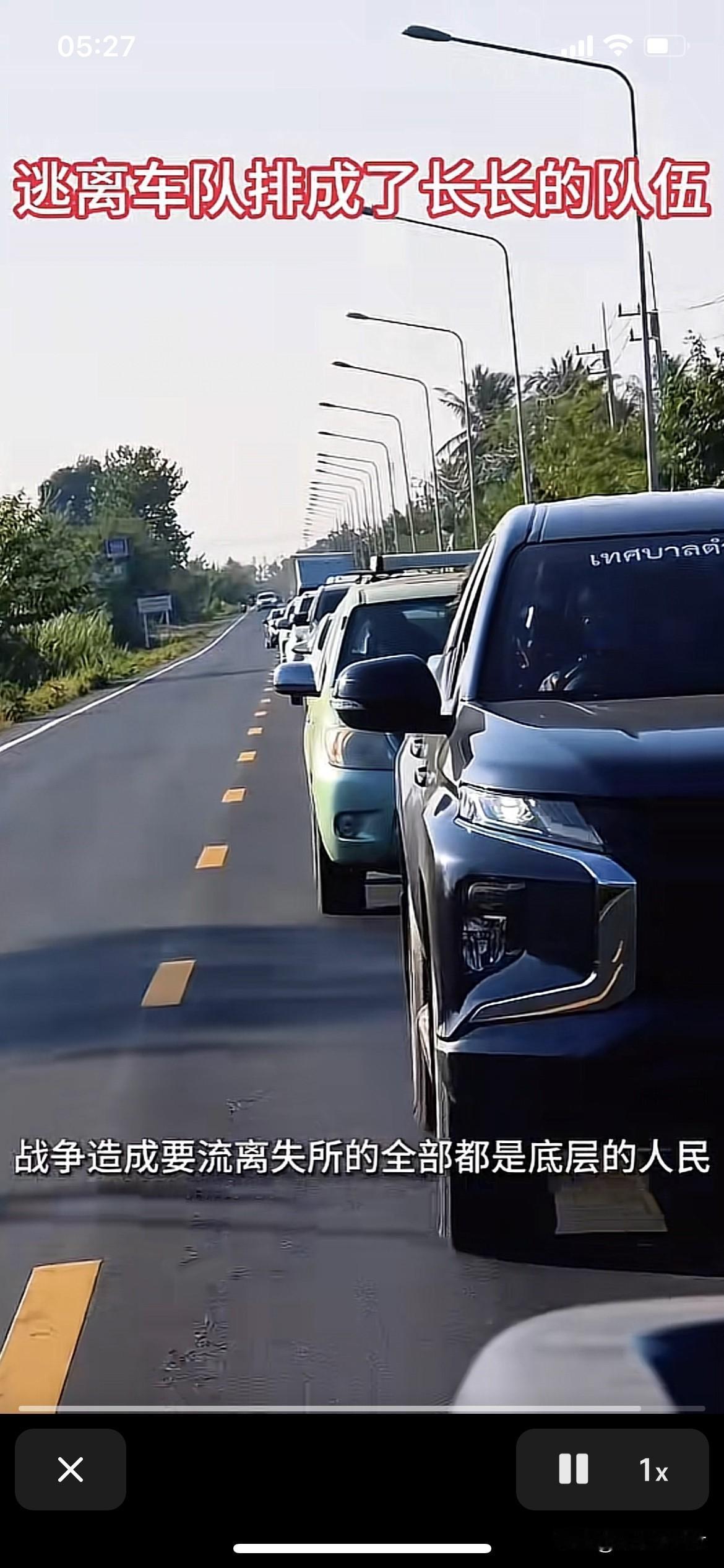 泰国与柬埔寨边境老百姓生活比较 泰国边境老百姓在撤离。 柬埔寨边境老百姓也在撤离 泰国边境老百姓开车排队有序撤离 柬埔寨边境老百姓骑摩托车或步行撤离。 泰国老百姓是从公路撤离 柬埔寨边境老百姓是在土路上撤离。 从对比可以看出泰国边境老百姓的生活水平更高。 柬埔寨的人多。