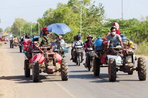 12月9日在柬埔寨暹粒省拍摄的逃离边境的居民。新华社发