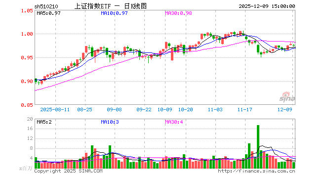 12月9日,上证指数ETF(510210)跌0.31%,成交额2.18亿元。当日份额减少3000.00万份,最新份额为59.63亿份,近20个交易日份额增加11.61亿份。最新资产净值计算值为58.08亿元。