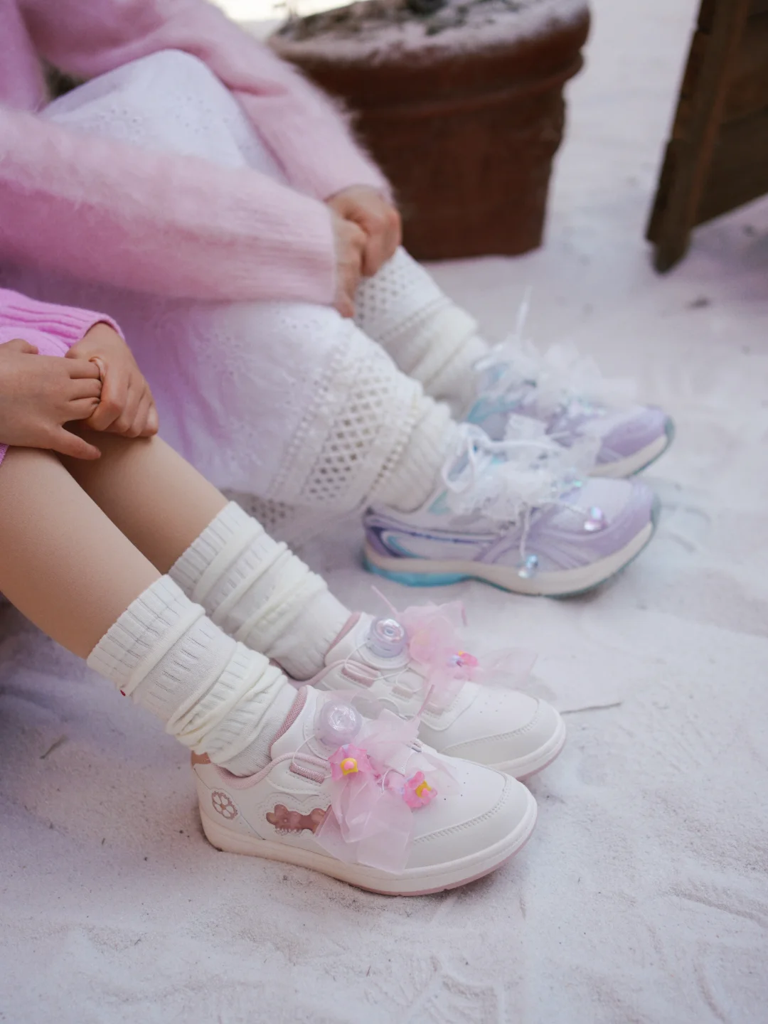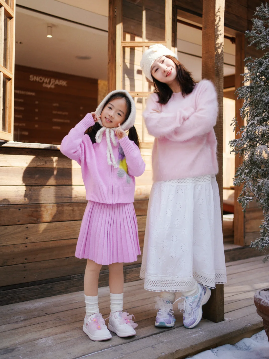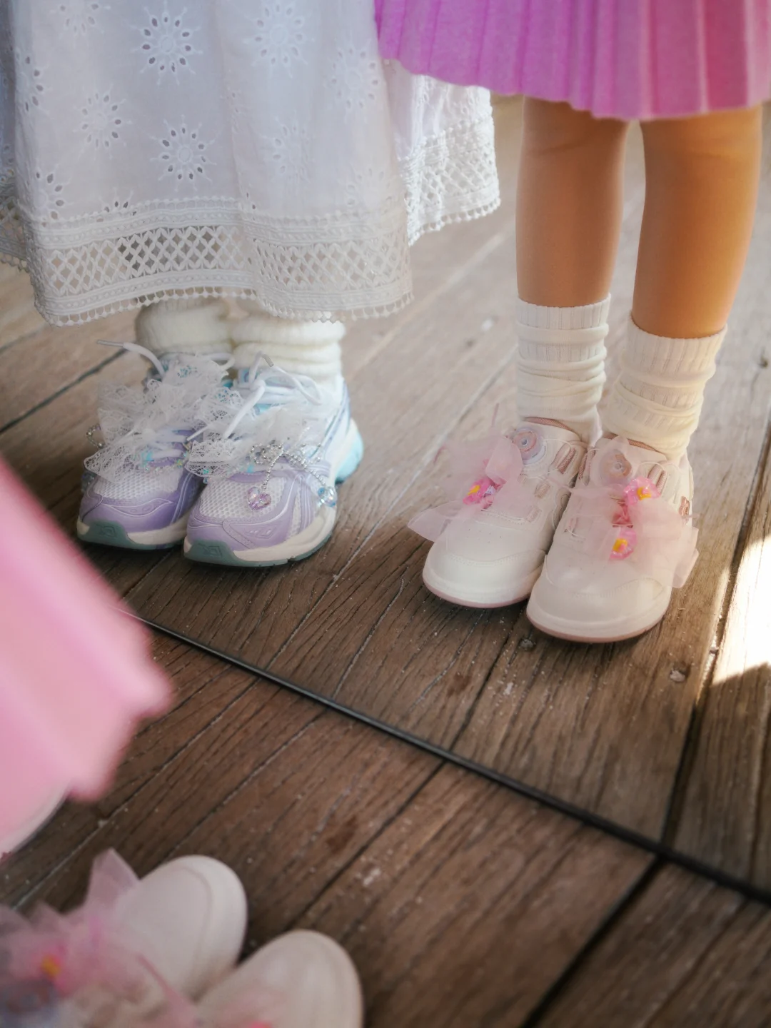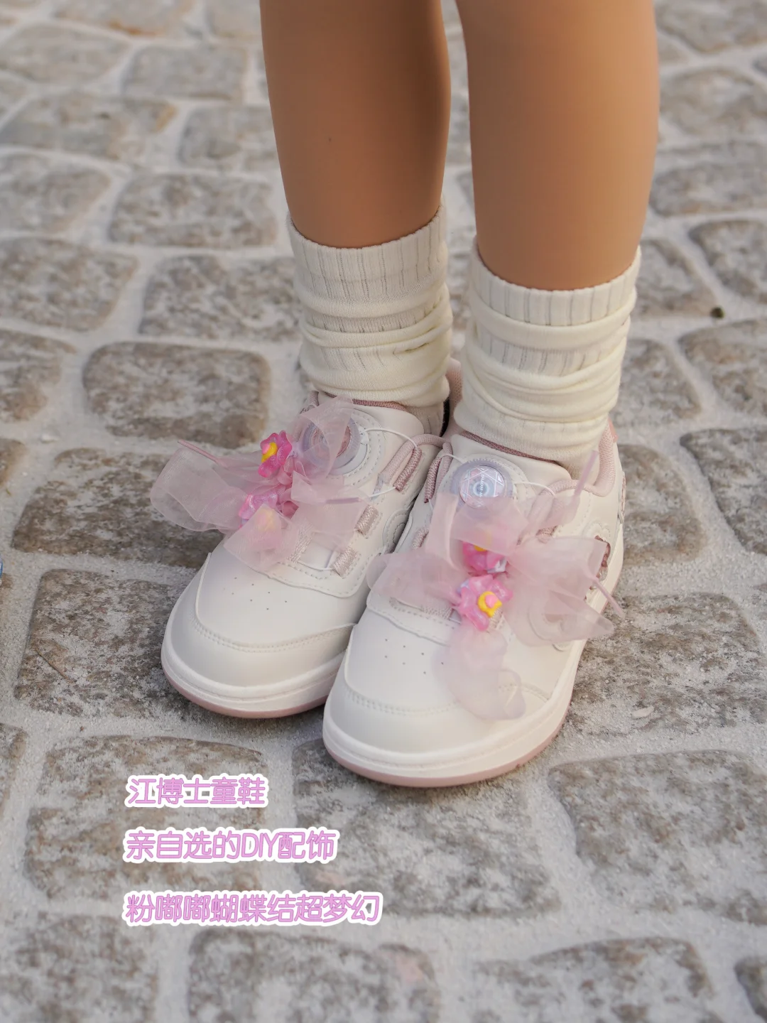 今天我们穿的亲子鞋,还是这位小小设计师亲手装饰的,江博士运动鞋颜值真的超能打~ 话说现在江博士门店有一面DIY装饰墙,可以自己去挑选装饰品装饰鞋子噢!她站在装饰墙前挑了好半天,一会儿抓个蝴蝶结鞋扣比划,一会儿举着珠花往鞋面上凑,选到喜欢的款式时眼睛都亮了:“妈妈这个配亲子鞋肯定好看!”
