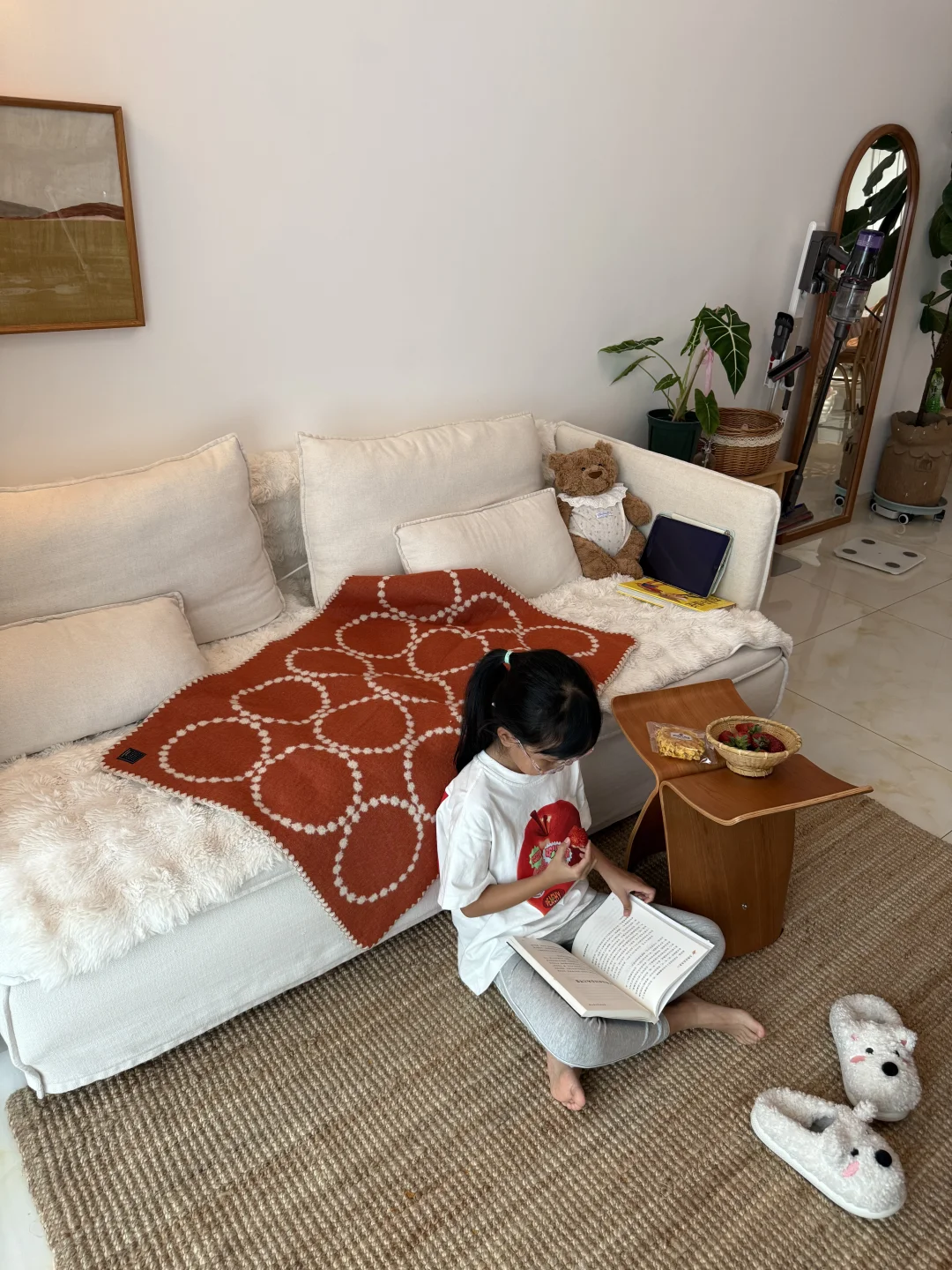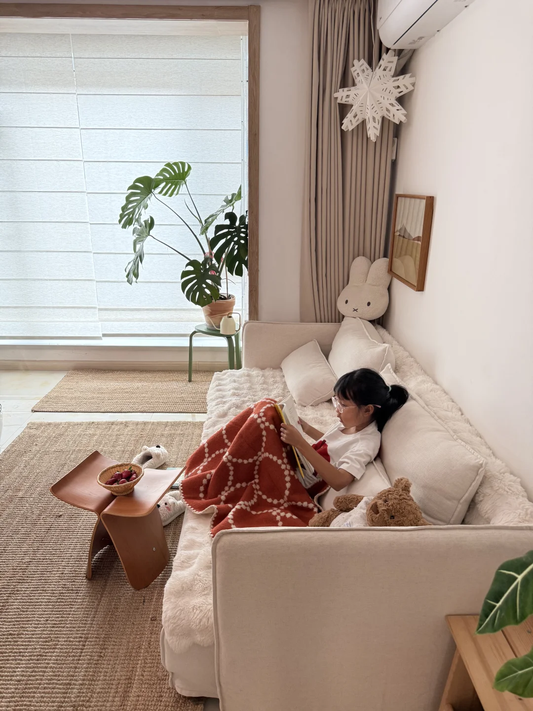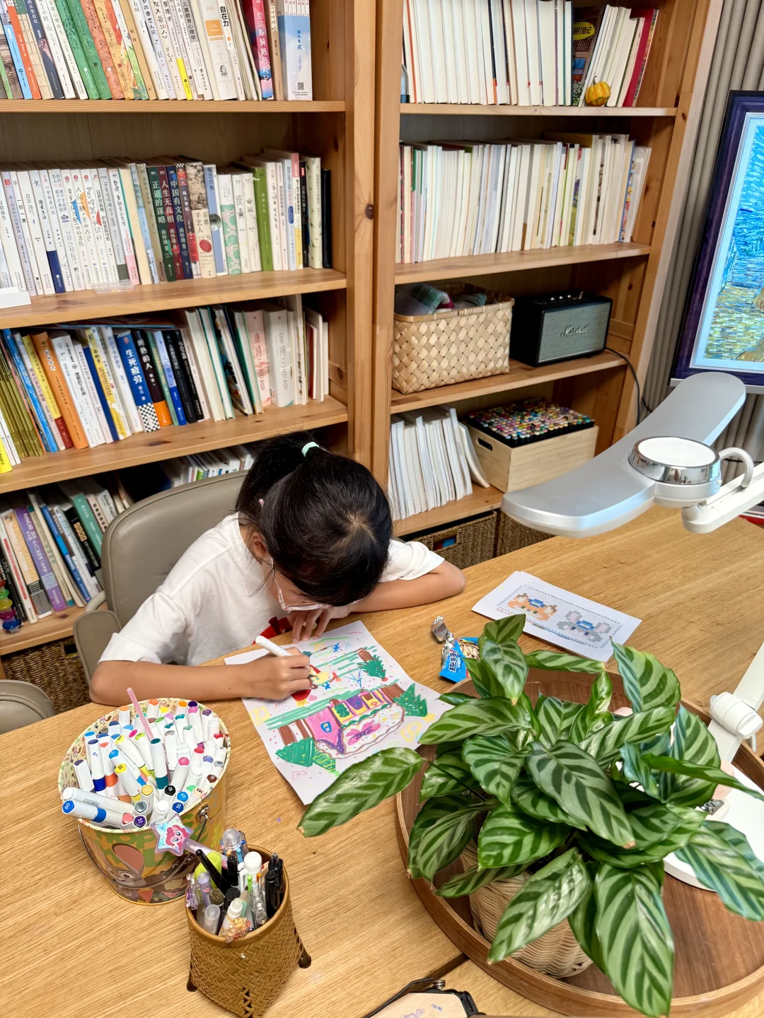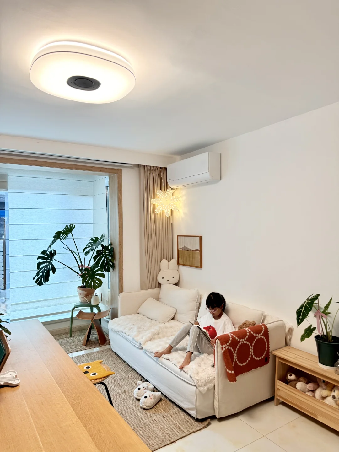 一家人都喜欢陶艺,一周前女儿自己画的盘子,爸爸给她烧制了出来,她表示超开心🍎,平时她在客厅里不是坐在书桌前画画、做手工,就是各个角落看书,本以为她会一直坐书桌旁,当时配备了台灯,但她跑来跑去,看书也是在各个角落,担心光线忽明忽暗对她眼睛不好,换成了明基Aora大主灯,这样家里每个角落都有均匀明亮的光线了