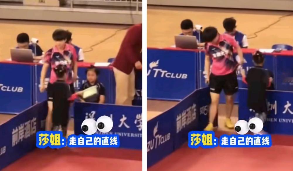 原来莎莎一般都走直线是有迹可循的。 莎莎穿越王楚钦和韩国小姐姐赛后握手太搞笑了。 ” 韩国小姐姐估计也是一秒愣神,内心OS,中国运动员的赛后握手环节,都这么充满意外惊喜的吗? 你别说,这套“莎式直线走法”可是有历史传承的。 背着双肩包,眼睛或许都没完全睁开,就能精准“铲”向教练邱贻可。 那股子义无反顾的劲儿,仿佛前面不是大活人,而是领奖台的最高处。 跟小朋友撞个满怀,她也只是眨眨眼,路线? 不带的,调整一下继续向前。 最后还是人家小女孩灵巧闪避,给这位专注走直线的姐姐让出通道。 这画面感,绝了! 更绝的是前辈郭炎的直播爆料,场地边的挡板拆了? 太好了,障碍清除,直接穿过去,拐弯? 不存在的。 这简直是把人生也过成了乒乓球比赛,盯准目标,快速出击,减少不必要的旋转和花哨步法。 这种“直线思维”背后,藏着的或许是一种顶级运动员才有的专注和纯粹。 球场上的莎莎,打球风格本就以干脆利落、线路清晰著称。 看来这姑娘是把赛场上的特质,毫无保留地带到了生活里。 在她眼里,两点之间线段最短,不仅是数学定理,更是行动准则。 这种“一根筋”的可爱,反而让人觉得真实得冒泡。 想想看,在一个处处讲究迂回、强调情商的环境里,这么一个走直线、不绕弯的姑娘,像不像一股清流? 她不是不懂人情世故,只是选择了把所有的算计和精力,都留给了那颗小白球。 生活中的这点“小迷糊”,恰恰反衬出赛场上的那个“大魔王”是何等专注。 下次再看莎莎比赛,不妨也留意一下她的场边步伐。 那份“能走直线绝不拐弯”的执着,或许正是她一次次把球干脆利落地打到对手台面上的秘密所在。 这姑娘,活得太通透了!