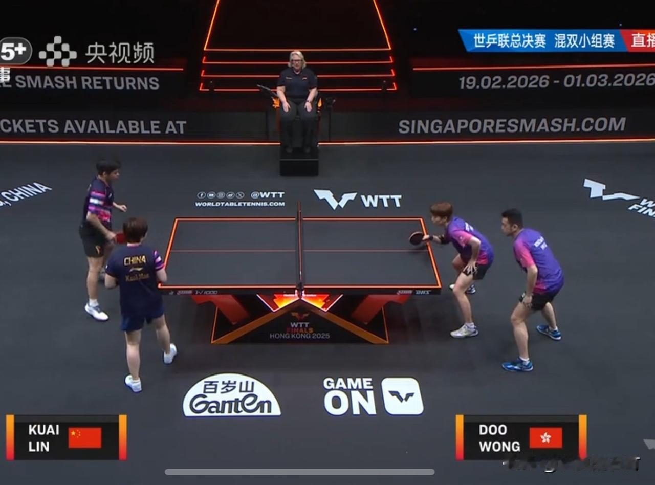 林诗栋蒯曼3:0黄镇廷杜凯琹 第一局开局3:2,林诗栋正手进攻得分4:2,林诗栋反手得分5:2,大圣得分5:3,小石头挑打得分6:3,小石头得分7:3,蒯曼摆短得分8:3,大圣得分8:4,蒯曼球下网8:5,大圣得分8:6,蒯曼接不住大圣的球。小石头得分9:6,杜凯琹球擦边得分9:7,小石头摆短得分10:7,小石头正手进攻球出台10:8,蒯曼失误10:9,林诗栋擦网球得分11:9。林诗栋蒯曼赢下第一局。 第二局,8:4,蒯曼得分9:4,小石头得分10:4,蒯曼发球直接得分11:4。林诗栋蒯曼赢下第二局。 第三局,开局4:1,小石头蒯曼发球直接得分5:1,小石头得分6:1,大圣得分6:1,双方得分8:2,林诗栋反手得分9:2,小石头得分10:2,大圣接发球反手直线得分10:3,大圣反手直线得分10:4,蒯曼防守得分11:4。林诗栋蒯曼赢下第三局。 林诗栋蒯曼3:0黄镇廷杜凯琹