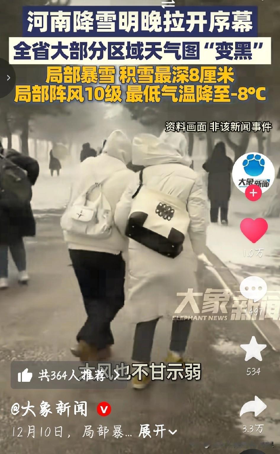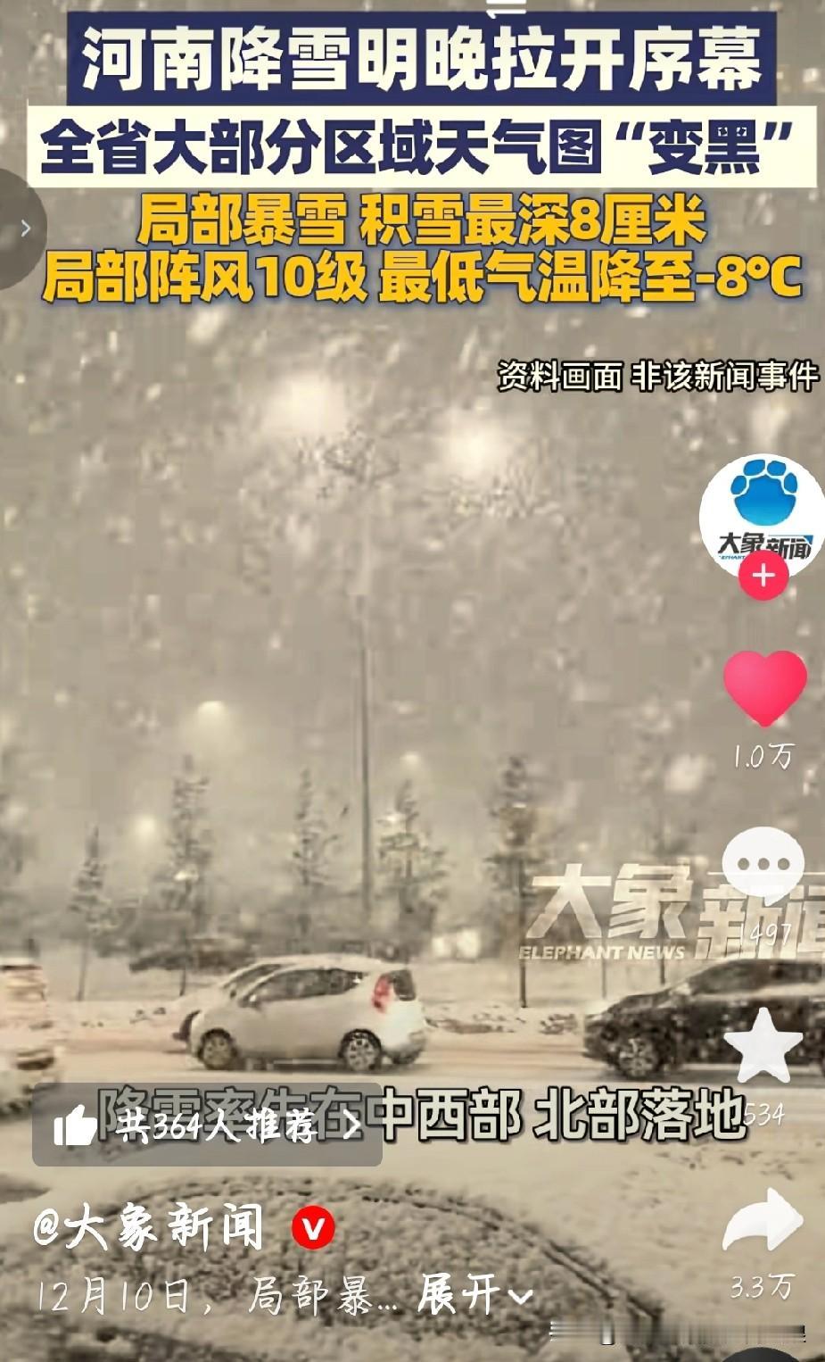 河南的家人们注意了!据大象新闻发布,12月10日明晚开始,咱们这儿要下暴雪了!打开天气图一看,全省大部分区域都“变黑”,这架势是真要下狠的! 郑州、洛阳、焦作这些地方都在暴雪范围内,巩义还可能有大暴雪,预计积雪能到10厘米以上,局地都快20厘米了。全省都发了几百条预警,还有暴雪红色预警,可不是闹着玩的! 高速可能封路、火车说不定停运,中小学都可能停课。开车的千万别硬闯,记得备防滑链;走路的放慢脚步,别摔着。家里多囤点吃的喝的,非必要别出门瞎跑。 这雪来得又大又猛,大家一定把安全放第一位,互相提醒着点! 河南暴雪预警 河南天气 12月10日,局部暴雪!河南降雪明晚拉开序幕,全省大部分区域